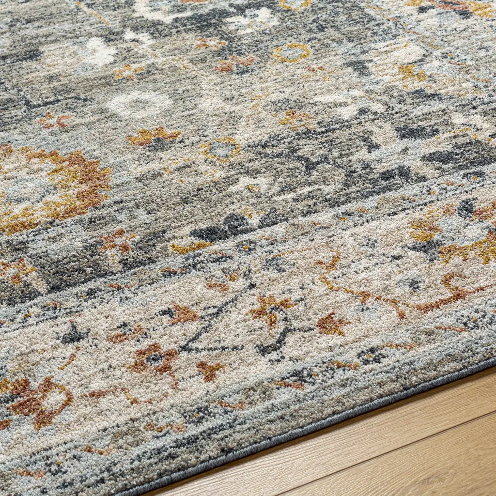 Collection: Karif Colors: Light Gray Construction: Machine Woven Material: 100% Polyester Pile: Medium Pile Pile Height: 0.31" Styles: Traditional Made In: Turkey Thickness: 0.39" Price Range: $$$$$ (Most Affordable)
