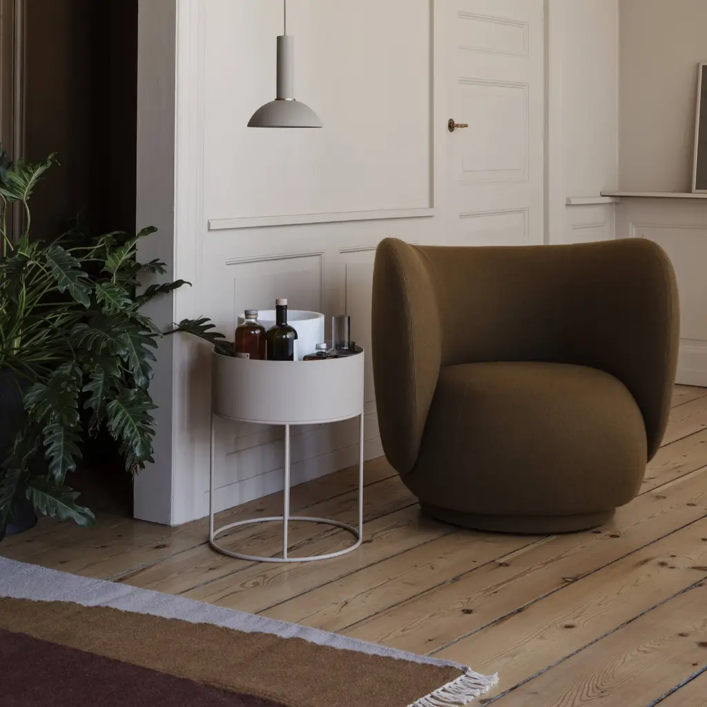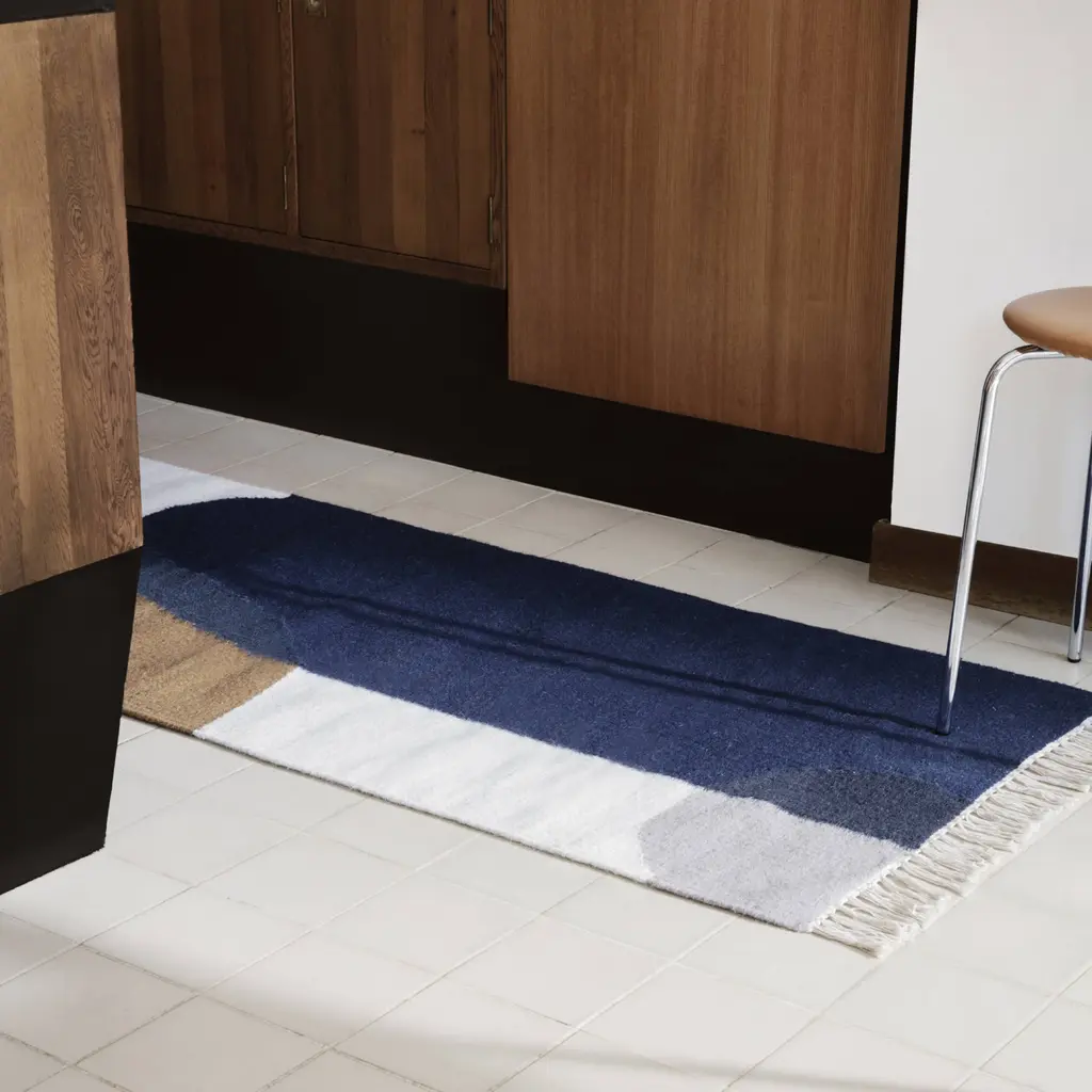 Adding a narrow runner version, Kelim redefines the traditional hand-craftsmanship of the manual loom technique that is one of the oldest in the world. Ferm Living gives the genre a Nordic twist by updating it In a solid brown melange or a choice of muted geometric patterns. The rug is characterized by slight individual variations in the familiar flat weave with its distinctive tactile quality and the individual shadings present in the hand-dyed yarn.