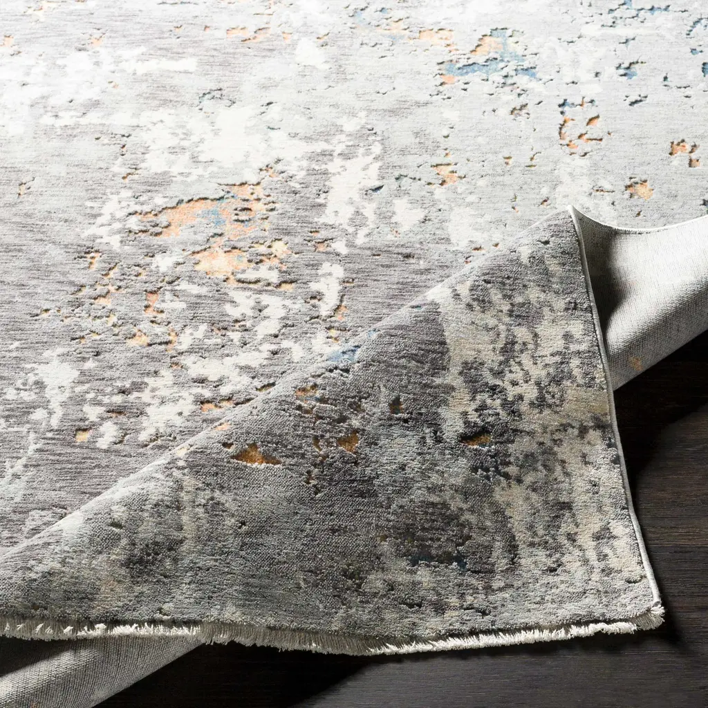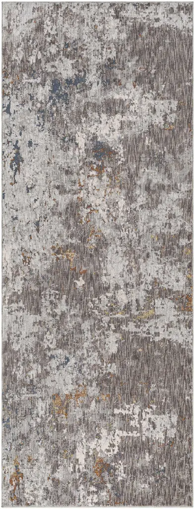 Collection: Kenedy Colors: Charcoal, Gray, Ice Blue, Orange, Medium Gray, Mustard Construction: Machine Woven Material: 100% Polyester Pile: Medium Pile Pile Height: 0.24" Styles: Contemporary Made In: Turkey Thickness: 0.31" Fringe Length: 0.6" Price Range: $$$$$ (Affordable)