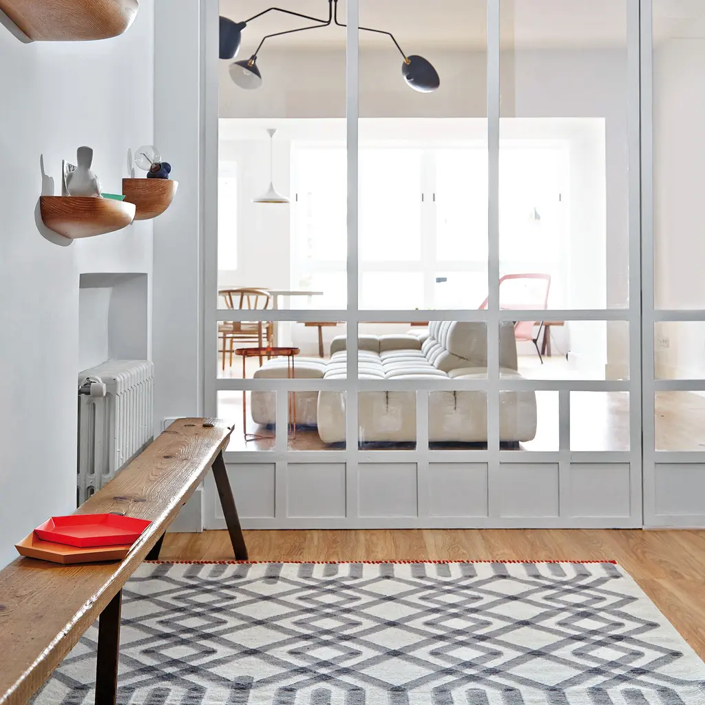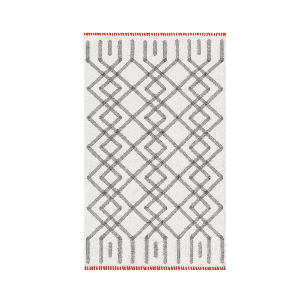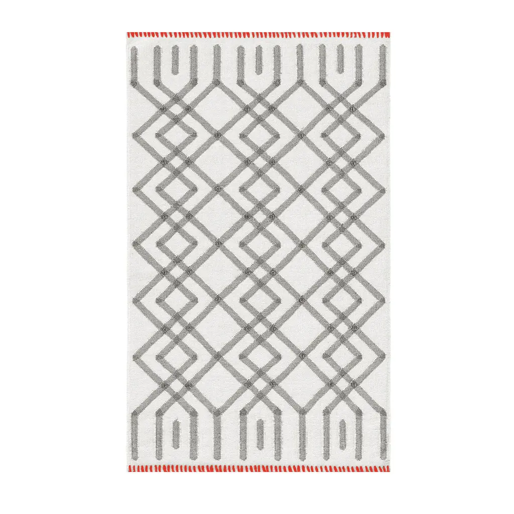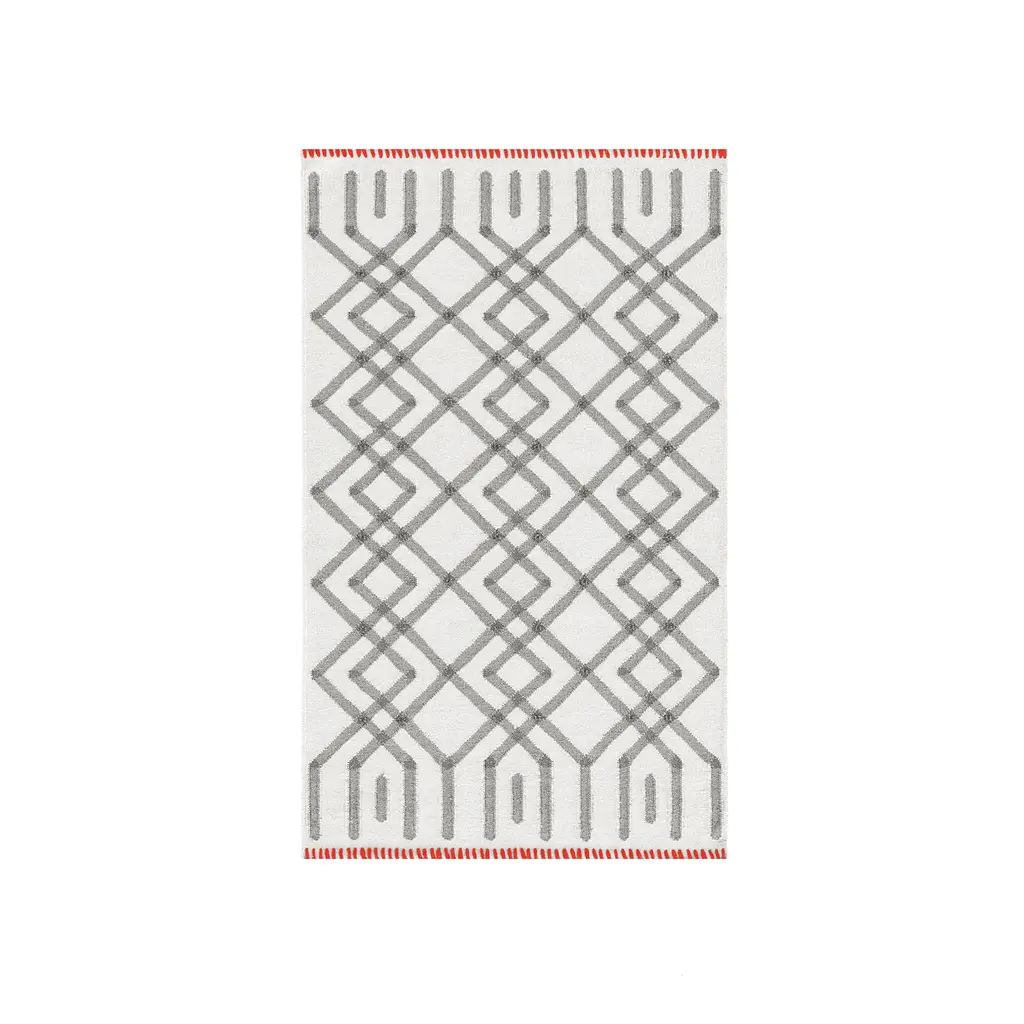 The Kilim Duna Rug draws from the quiet geometry of desert landscapes, where shifting sands create ever-changing patterns. Designed by Odosdesign, its repeating diamond motif is woven by hand using traditional kilim techniques, resulting in a flat, lightweight structure. Soft, neutral wool tones keep the design subtle, while a coral-hued stitch detail along two edges adds a touch of unexpected contrast. Versatile and reversible, this rug works effortlessly in a variety of spaces and is available in three sizes, including a runner and bedside format.