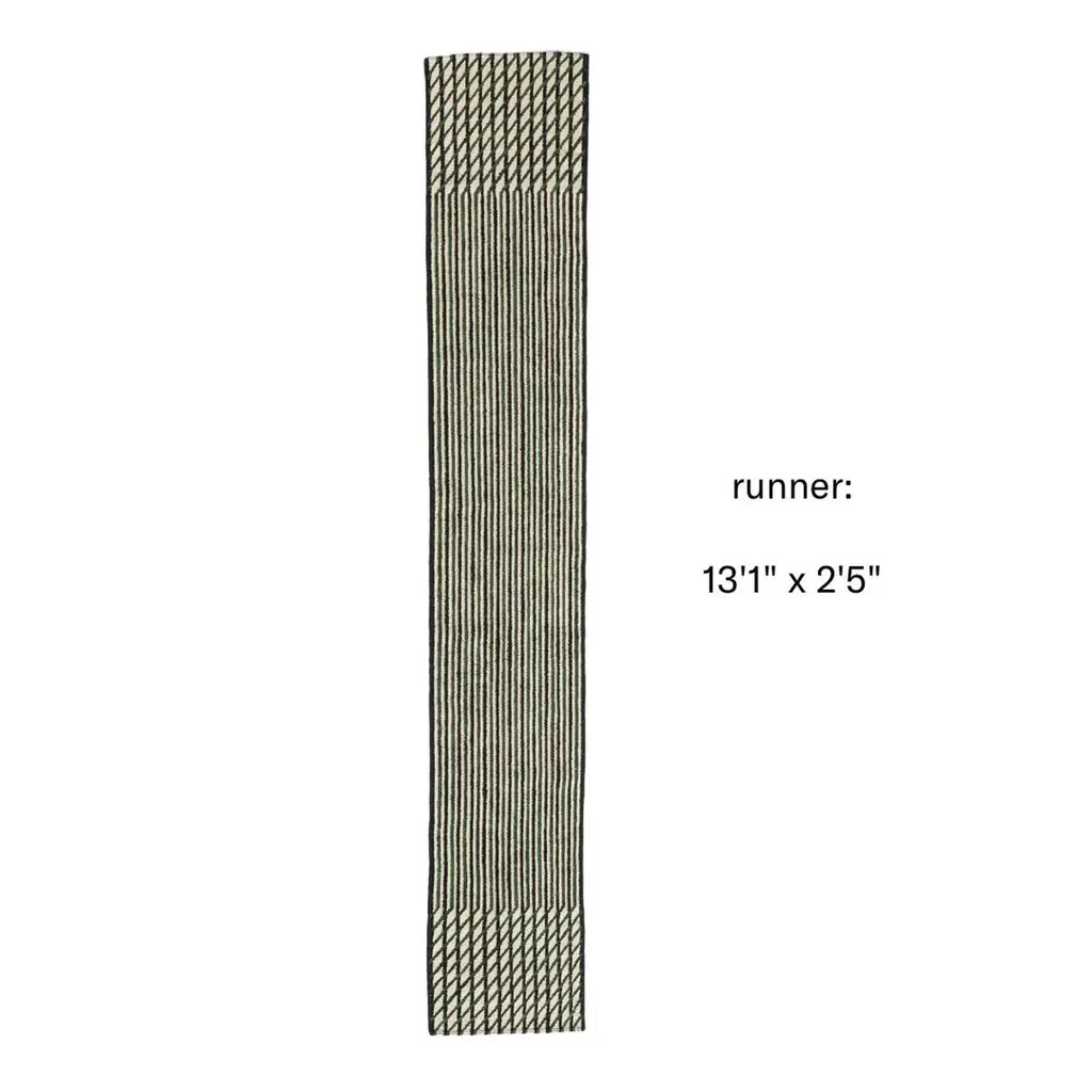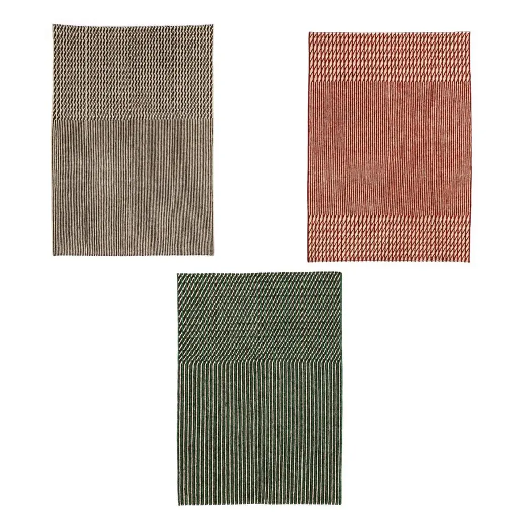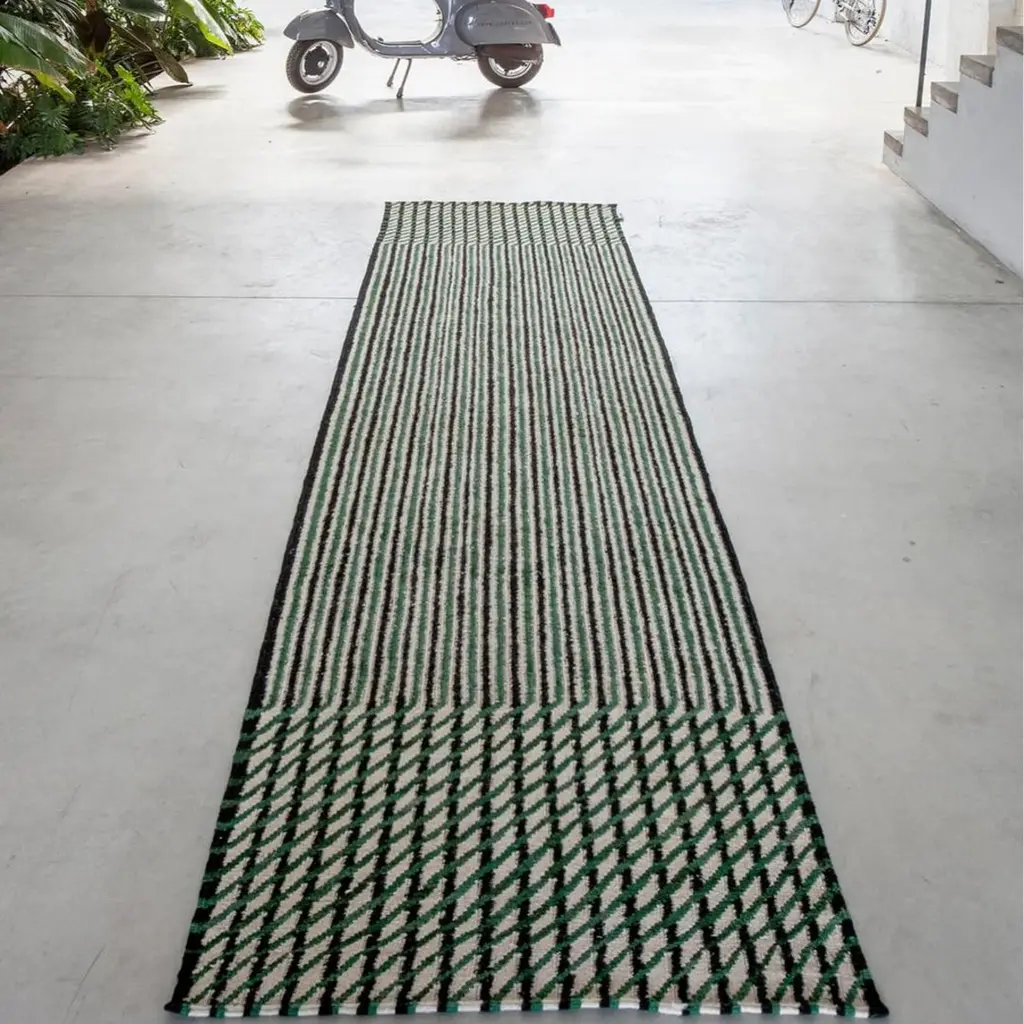 Large 'Blur' Wool Kilim Rug by Ronan and Erwan Bouroullec for NanimarquinaFabricated from Afghan wool, 'Blur' is a hand-loomed kilim rug. The sequence of geometric shapes and repetition are definitive hallmarks of the Bouroullec brothers. The rug's blurred effect has been achieved by inverting the direction in which the kilims are traditionally woven. This change in weaving causes the lines to be blurred. When viewing the rug from afar, an indefinite, unfocused surface is apparent, that gives its name to the collection. Close up, upon the rug's playful geometry is revealed.Nani Marquina founded her namesake company in 1987 in Barcelona. More than 30 years later, the company continues to offer artisanal rugs worldwide without compromising on design, quality, or aesthetics. Price is per item. Available in unlimited quantities in five standard sizes and 3 colors. Also available as a runner in green only. Custom sizes available upon request for an additional fee and with extended lead times possible; kindly inquire for more information. This listing is for the large 'Blur' rug; please specify color when ordering.In-stock lead time for small and medium-sized rugs and runner is 2-3 weeks. Larger sizes can take 12 weeks or more. Out of stock or custom sizing can add additional 14 weeks or more. Inventory availability can change at any time. For time-sensitive orders, please inquire prior to purchasing.Please note that due to the organic and handmade nature of this fiber some variation in color may occur from piece to piece, which may become further pronounced with prolonged exposure to sunlight. Only one representative example of the rugs is shown in the images.Also note this item must ship directly from Nanimarquina’s fulfillment center, so 1stDibs arranged shipping or local pick-up are not an option. Shipping cost quoted is per item and cannot be combined.Hand made to order. All sales are final.