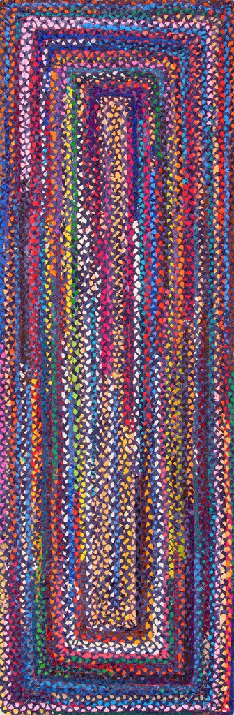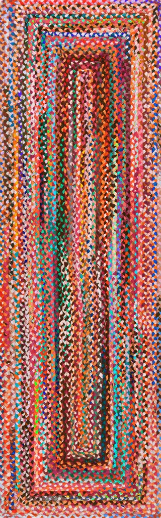 LAVA RAIN RUNNER 1 is a rectangular wool rug.Zollanvari Super Fine Gabbeh.This contemporary design finds inspiration in delicate and colourful flowers growing in the lunar landscape of a volcanic field catching the first glimpses of moonlight at dusk – capturing the bewitching beauty of the landscape at a certain moment in time. Originally conceived by Studio NOV24 Vienna the design finds inspiration in photo archives of volcanic landscapes. The 3D effect, a challenge in a handwoven carpet, was achieved using areas of ice-white and -blue flanked by abrashes of grey leading to the volcanic browns of the cracked lava.