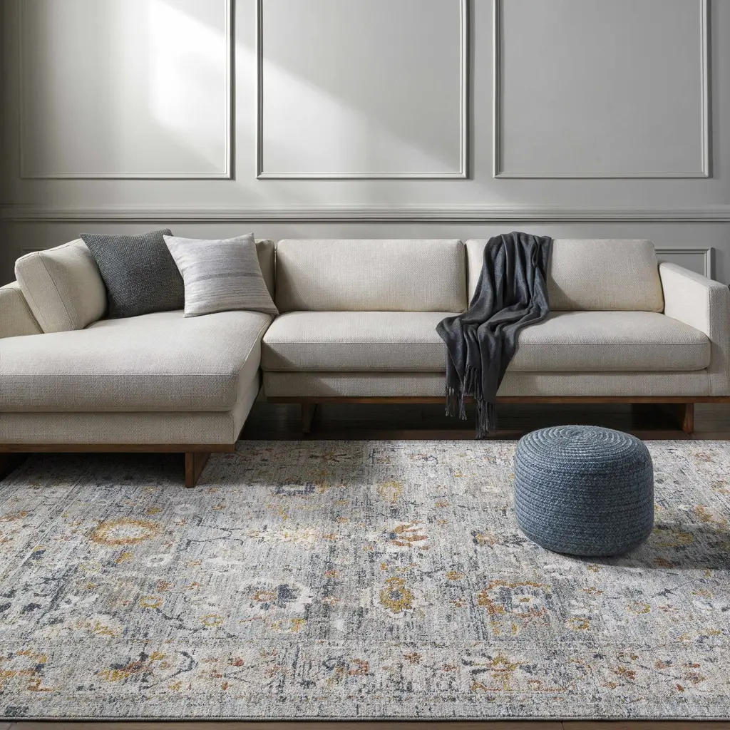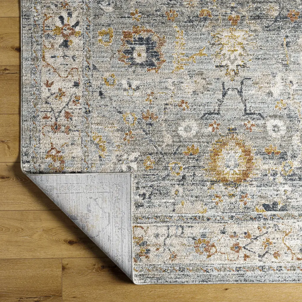 Collection: Layne Colors: Light Gray Construction: Machine Woven Material: 100% Polyester Pile: Medium Pile Pile Height: 0.31" Styles: Traditional Made In: Turkey Thickness: 0.39" Price Range: $$$$$ (Affordable)