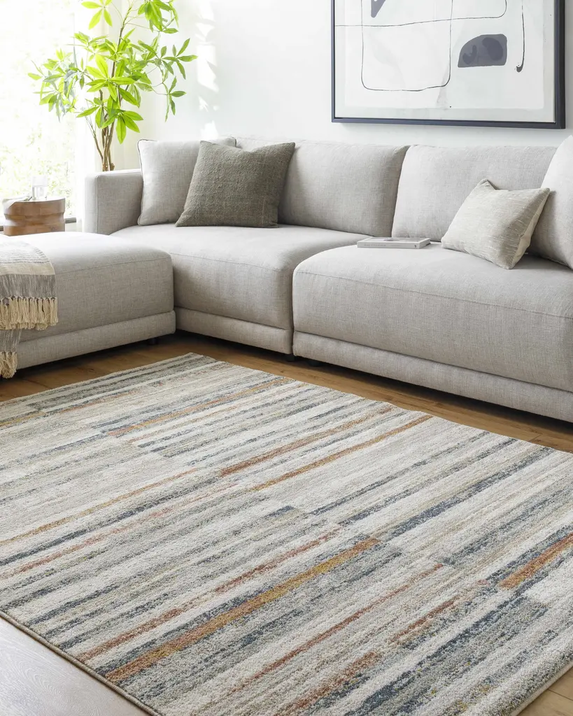 Collection: Leone Colors: Beige Construction: Machine Woven Material: 100% Polyester Pile: Medium Pile Pile Height: 0.31" Styles: Contemporary Made In: Turkey Thickness: 0.39" Price Range: $$$$$ (Affordable)