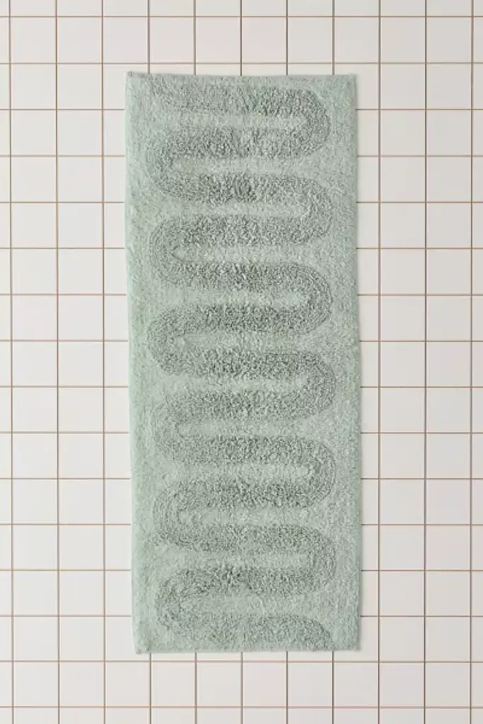 Plush tufted bath mat in an extended runner silhouette that’s perfect for galley spaces. Finished with squiggled motif tufted at the top in a contrasting pile that creates the coziest textural appeal. Available exclusively at Urban Outfitters. **Features** \- Tufted bath mat from UO Home \- Plush cotton fabrication that’s so cozy underfoot \- Extended runner silhouette \- Finished with a squiggled motif at the top \- Versatile - use it in your bathroom or at your bedside! \- UO exclusive **Content + Care** \- 100% Cotton \- Machine wash \- Imported **Size** \- Dimensions: 20"l x 50"w