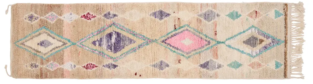 Our Moroccan pieces are each one-of-a-kind. Much of our collection was woven between 30 and 100 years ago, and curated by us. Other rugs in our collection are fresh off the loom and made with traditional techniques. Moroccan rugs don’t come with a key. As with any painting or poem, their motifs have many subjective interpretations. Originally made for personal use, these rugs took months to weave, documenting a shifting tide of events and emotions in the weaver’s life.