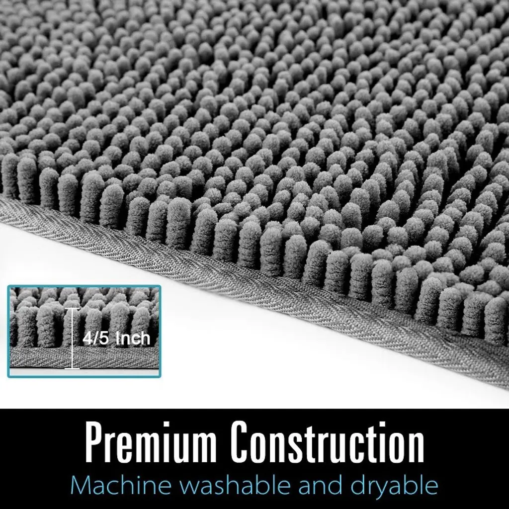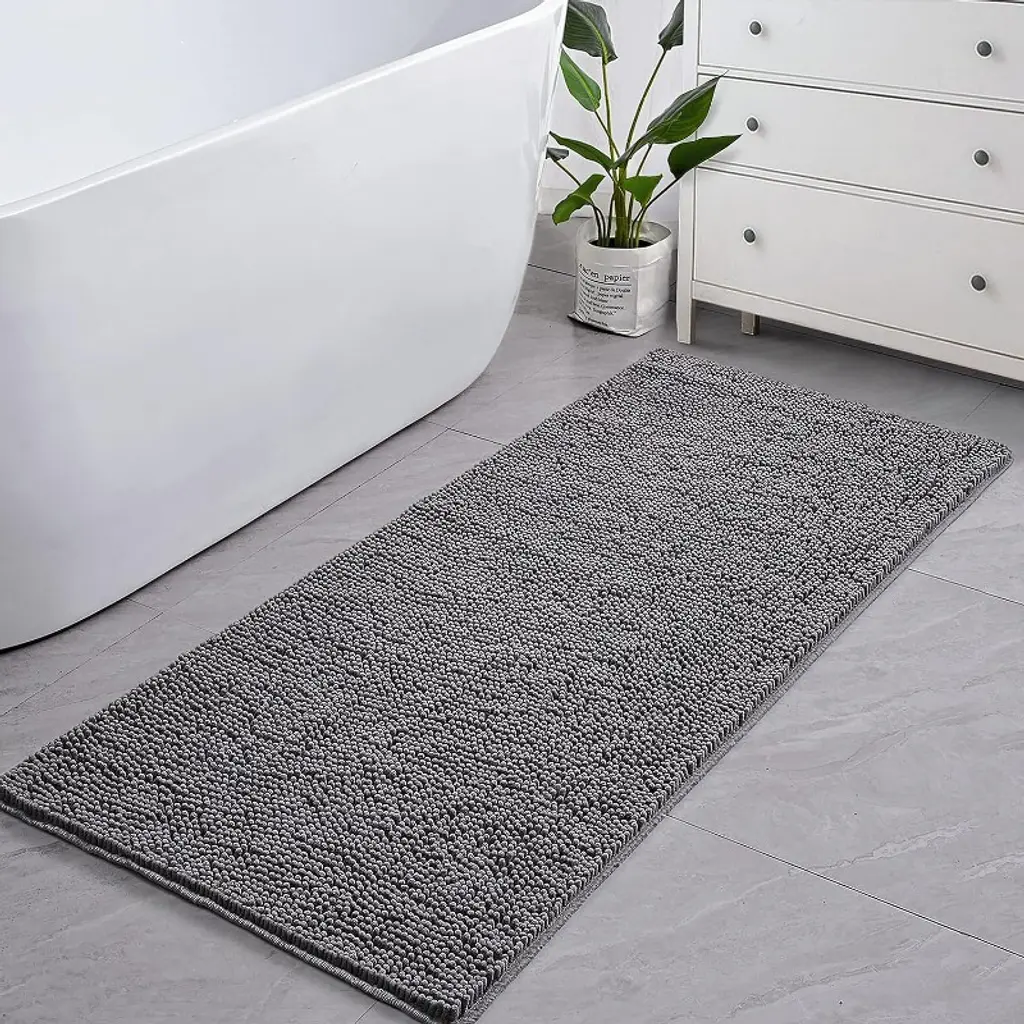 Luxury Shaggy Bath Mat 24"x60" - Ultra Plush Chenille, Non-slip & Machine Washable (Gray)