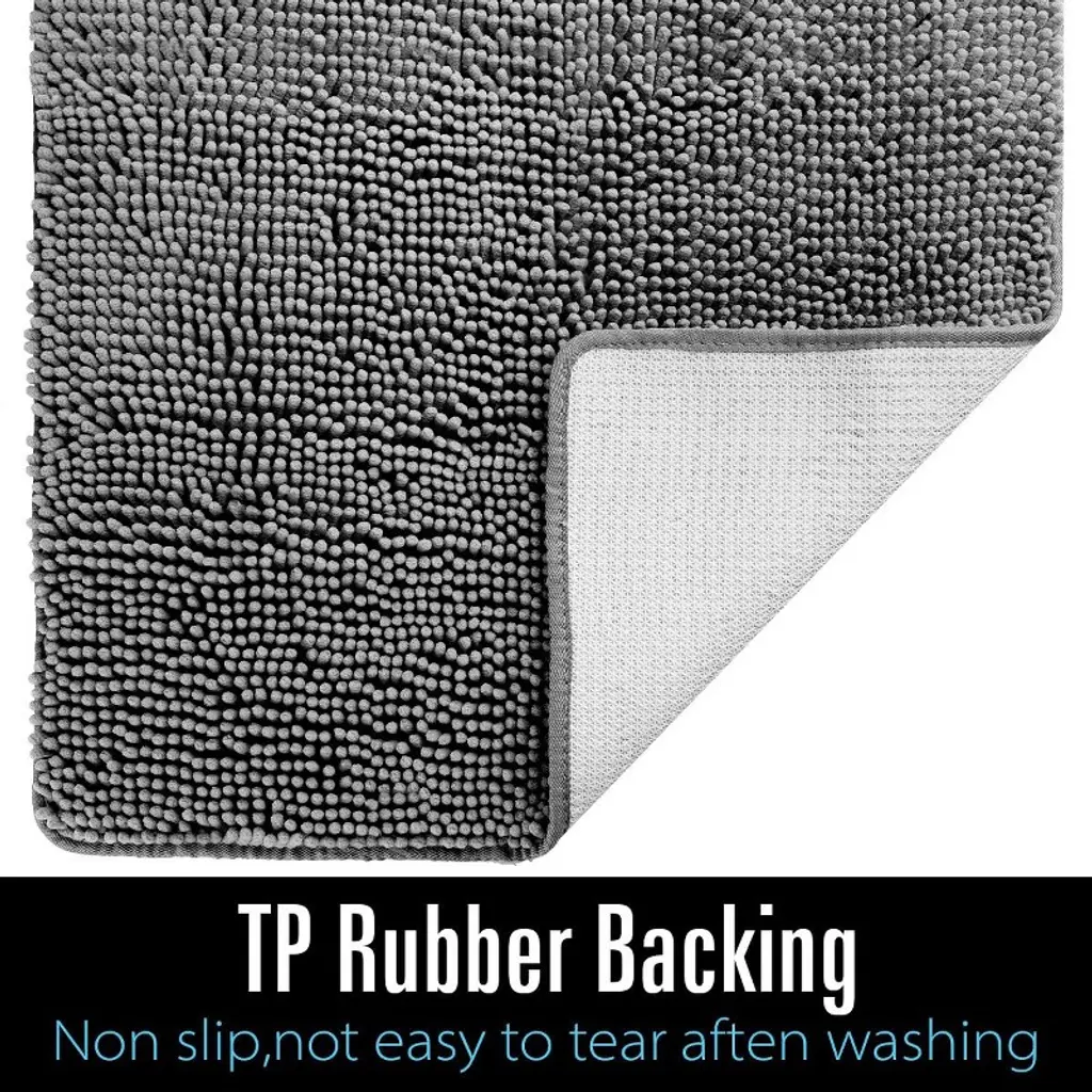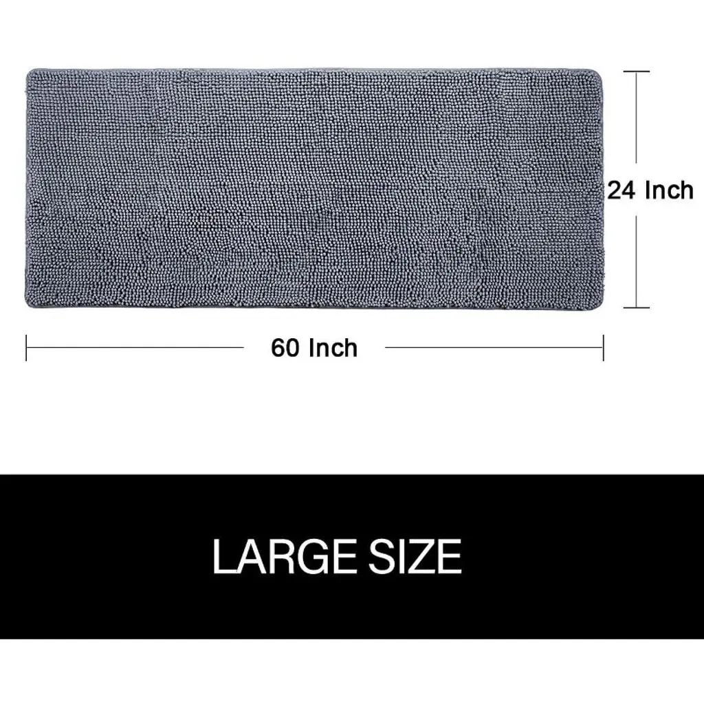Soft large bath mat: The bath mat features ultra-soft microfiber, the outer layer is cozy to stand on; The bath mat offers exceptional comfort and support on your feet like a fancy bathrobe from a high-end hotel when you're stepping out of the bathroom Ultra absorbent and fast dry: Not only the bathroom rug runner incredibly soft, but it also absorbs water from your feet very quickly; When you step out of the shower and onto this bathroom rug, your feet will dry in seconds Strong backing: The strong backing which is providing the best slip resitant effect on the slippery bathroom; As bathroom runner for your family, the bath rug is more suitable for kids and the elderly; Please place rug on clean dry smooth floor Machine washable: Our grey bath mat can be machine washed again and again, the tpr backing ensures its durability and longevity; Tips: It's probably best to tumble dry on low or hang dry it Oversized bath runner: Generously sized at 24’’ x 60’’; no more bare feet between small rugs; Perfect rug runner for bathroom, double sinks, kitchen, entrance, hallway or bedroom
