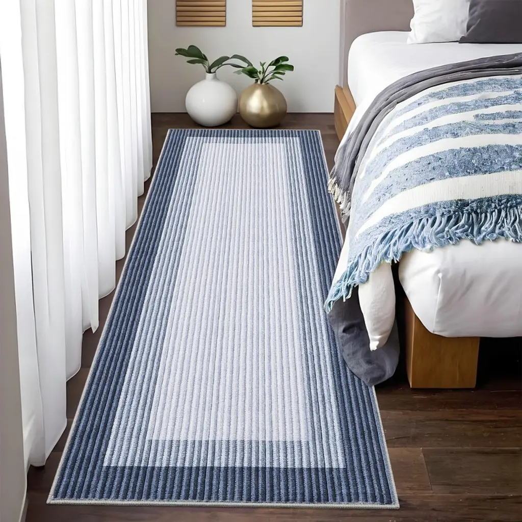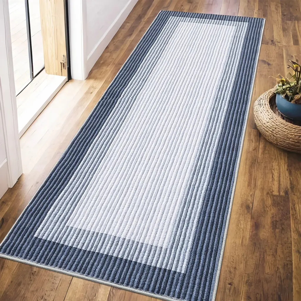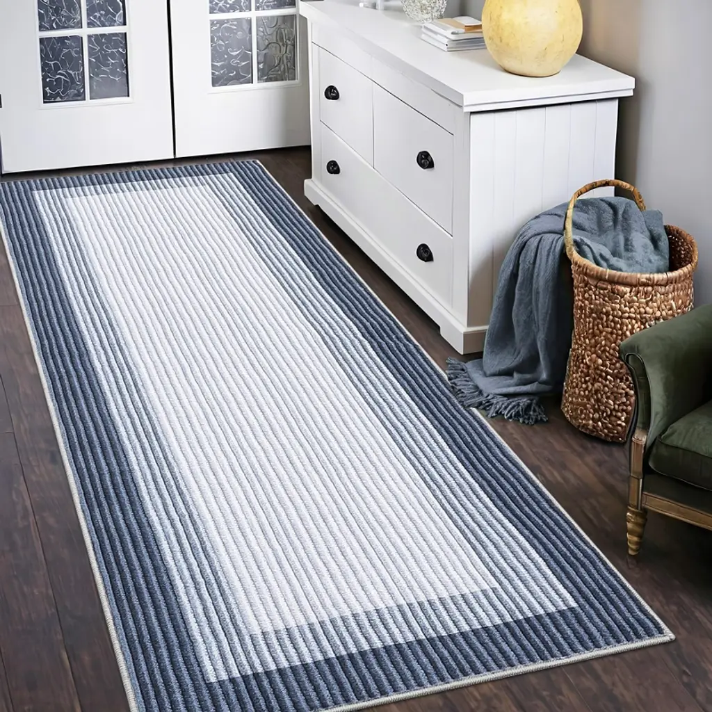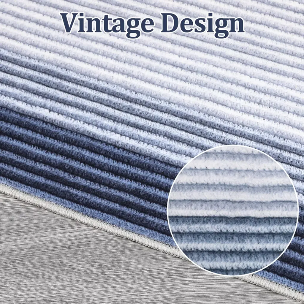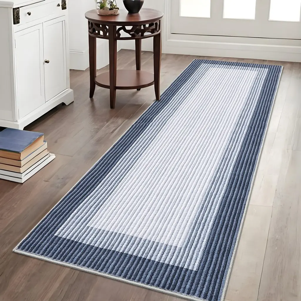Machine Washable Runner Rug 2X6 Modern Abstract Rug, Low Pile Bedside Rug, Non-shedding Soft Gradient Carpet, Indoor Foldable Print Rug, Blue