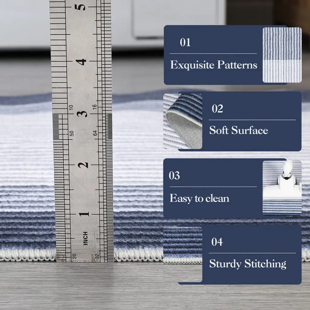 Transform your home into a cozy haven with the luxurious, stylish, and versatile low pile area rug, designed for comfort and easy maintenance!Highlights at a Glance:Luxuriously soft and skin-friendly texture for exceptional comfortChic modern abstract design enhances any room's decorNon-shedding and machine washable for effortless cleaningNon-slip backing for a safe environment in high-traffic areasVersatile placement options suitable for any room in your homeSpecifications:Materials: 100% polyester, Pearl VelvetSize(Ft): 2x6 / 3x5 / 5x7 / 8x10 / 9x12 / 10x13Weave Type: Print PatternNote:Simply wipe local stains with a wet rag and use a vacuum cleaner for daily maintenance.Deep cleaning is also possible, with the option to machine wash the rug, ensuring it remains fresh and clean.When you first get the carpet, you may notice some wrinkles or folds, but don't worry! Simply lay it flat on the floor and the creases will naturally disappear. You can use it with peace of mind learning that this is a normal process.