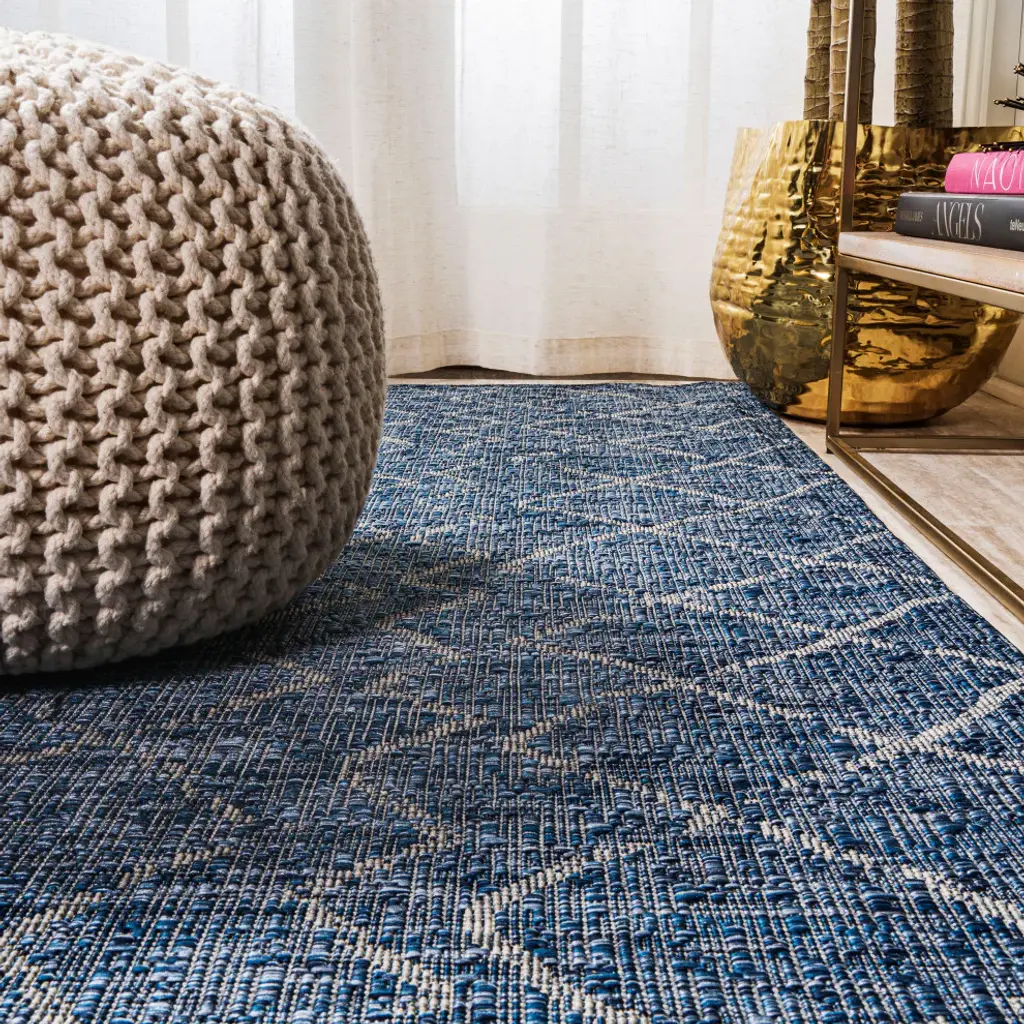 Inspired by vintage Moroccan rugs, our indoor/outdoor rug adds modern Bohemian style to your porch, patio or sunroom. The classic Moroccan pattern has a geometric design of beige diamonds on a field of dark gray. Mingled threads give this rug a handwoven, vintage vibe that''s perfect for an entry, kitchen, hallway, living room or bedroom too. The pet-friendly and kid-proof flatweave design makes it easy to clean, and perfect for the beach house.Features:• Power loomed with a flat pile that''s soft and durable• Woven shades of light gray and beige on a deep navy background• Made from easy-care polypropylene - just sweep, vacuum or hose down with mild soap and water• 100% Polypropylene• No backing, use of rug pad is recommended (sold separately)• Power Loomed in Turkey• Actual Dimension: 2 ft. 2 in. X 10 ft.• Color: Navy/Light Gray• Thickness measures: 0.19 in.• Available in multiple sizes and/or colorsRug Care:• Vacuum regularly and spot clean as needed; avoid direct and continuous exposure to sunlight; use brushless vacuum; remove spills immediately; if liquid, blot with clean, undyed cloth by pressing firmly around the spill to absorb as much as possible; for hard to remove stains, professional rug cleaning is recommended; store in a dry, well ventilated area and rotate for consistent wear• Packing and shipping may cause temporary creases in rugs, which will flatten out after a week on the floor; to expedite the process, try back-rolling your rug before laying it down, and then allow ample time for the remaining creases to relax• Please Note: Due to differences in monitors, some rug colors may vary slightly. Lengths and widths may vary from the published dimensions. Patterns may vary slightly according to shape and size selected.About us:Style your floors with JONATHAN Y. By combining fine craftsmanship and design, this New York creative studio is bringing fashion to your floors. The collection mixes sustainable organic materials, vibrant colors and trend worthy styles to create JONATHAN Y''s distinctive catalog of rugs.