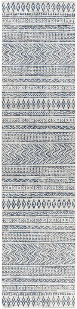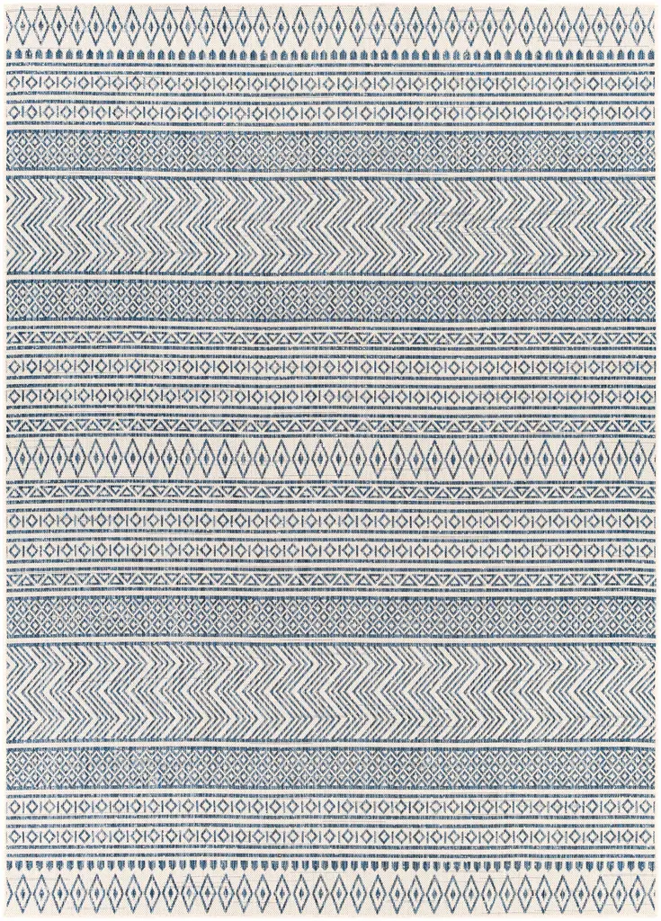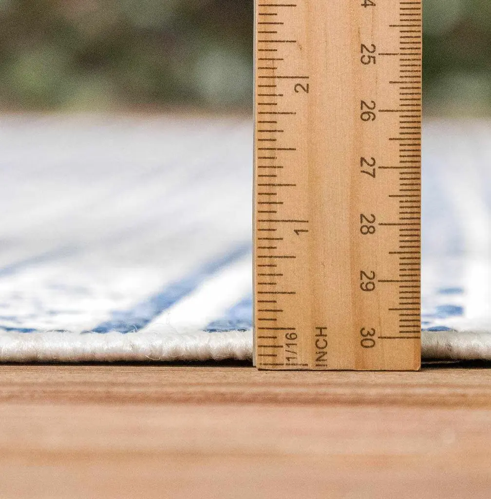 Collection: Madras Colors: Navy, White, Blue, Light Blue Construction: Machine Woven Material: 100% Polypropylene Pile: No Pile Styles: Transitional,Bohemian Outdoor Safe: Yes Made In: Turkey Thickness: 0.16" Price Range: $$$$$ (Most Affordable)