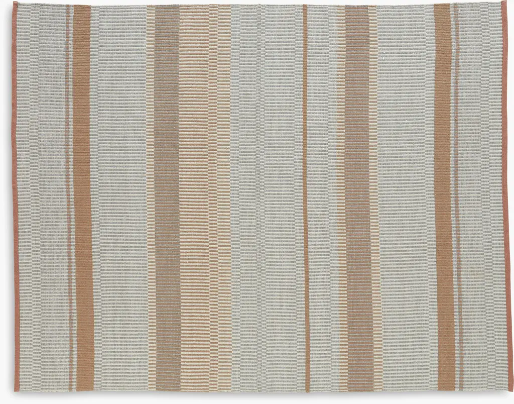 The Marea Wool Rug (2021), part of the DWR Rug Collection, is a colorful flatweave, woven by hand on a horizontal manual loom. Made of high-quality, handspun wool and cotton, this rug feels cozy and soft underfoot. Vacuum periodically - do not use a rotating brush. Shedding is a natural, common occurrence and will decrease over time. Made in India.
