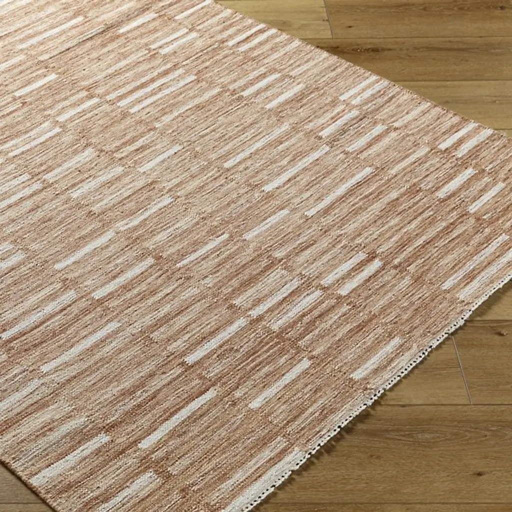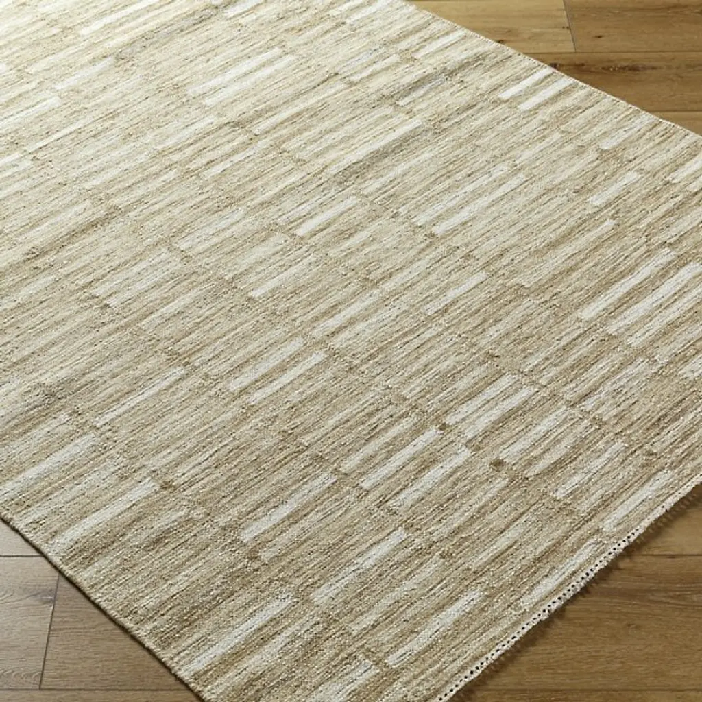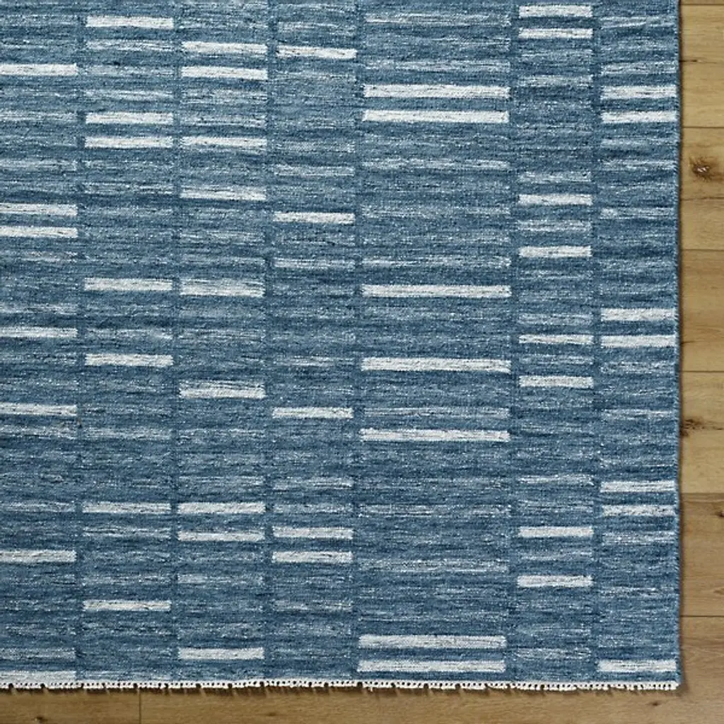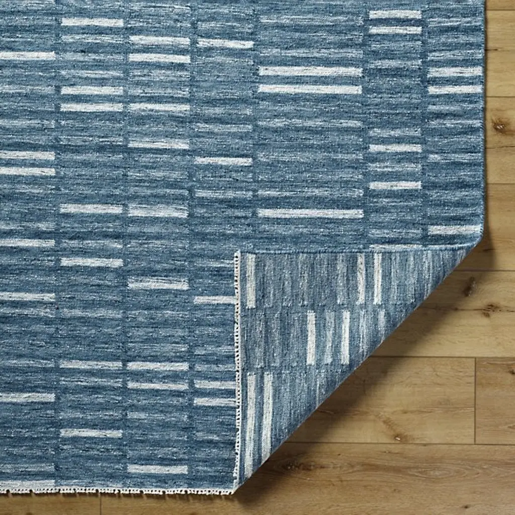 The Marseille MLL 2300-2306 Handmade Area Runner from Surya features a pattern of rectangular strips with varied hues. It is a blend of artisanal modern and contemporary styles, featuring a wool face and cotton wrap. This runner has been expertly crafted in the hand-woven tradition, and it provides protection for your floor.