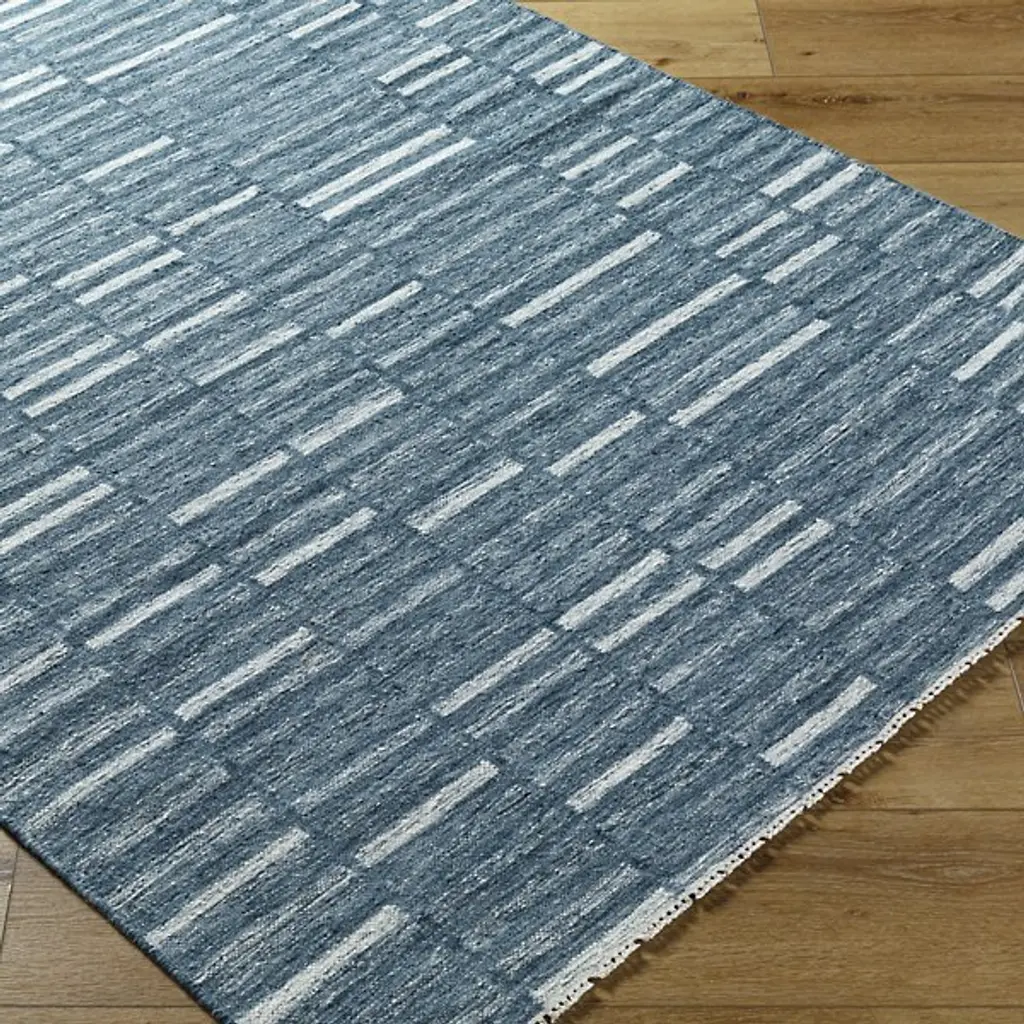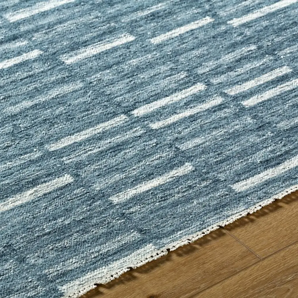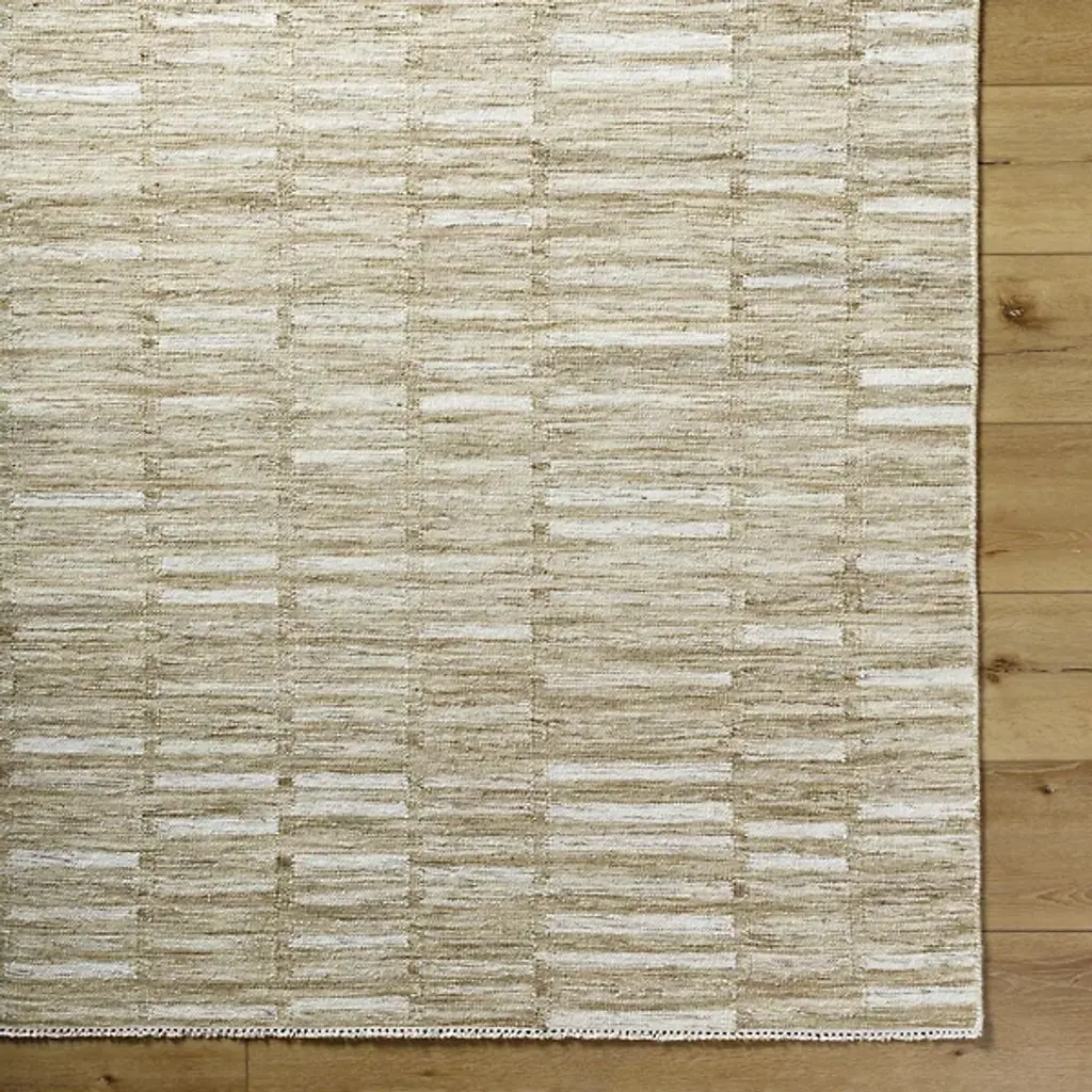The Marseille MLL 2300-2306 Handmade Area Runner from Surya features a pattern of rectangular strips with varied hues. It is a blend of artisanal modern and contemporary styles, featuring a wool face and cotton wrap. This runner has been expertly crafted in the hand-woven tradition, and it provides protection for your floor.