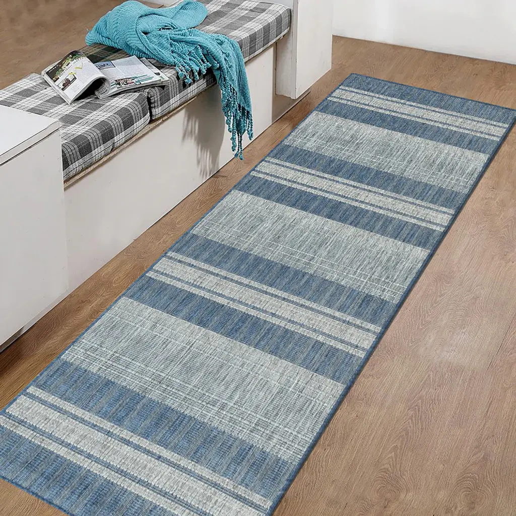 Maryland Blessy Runner, Blue, 2'4" X 8', Striped