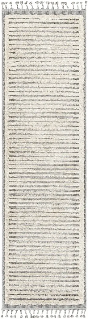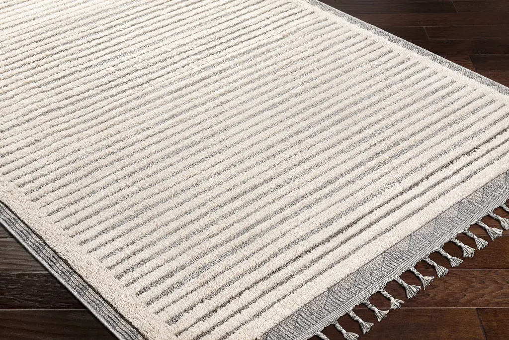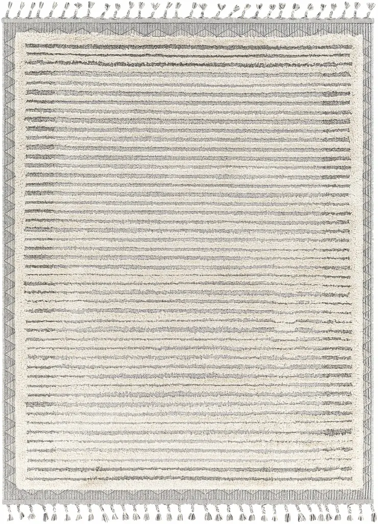 Collection: Mauhao Colors: Charcoal, Gray, Light Slate, Beige Construction: Machine Woven Material: 100% Polypropylene Pile: High Pile Pile Height: 0.71" Styles: Transitional,Bohemian Made In: Turkey Thickness: 0.9" Fringe Length: 3.15" Price Range: $$$$$ (Most Affordable)