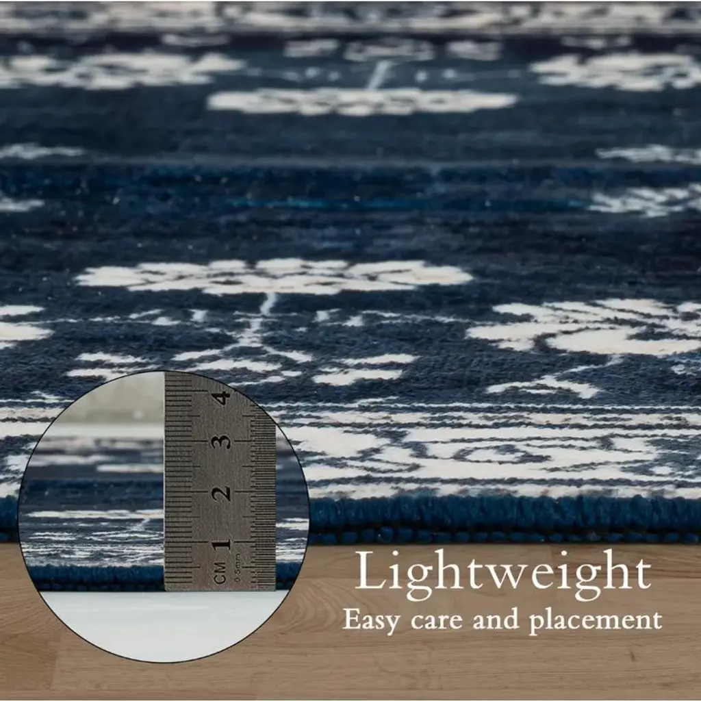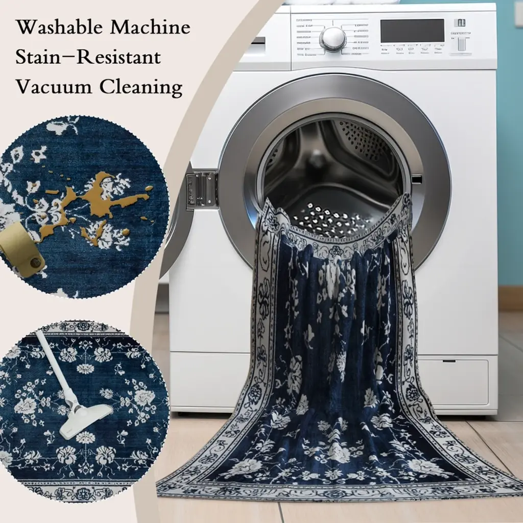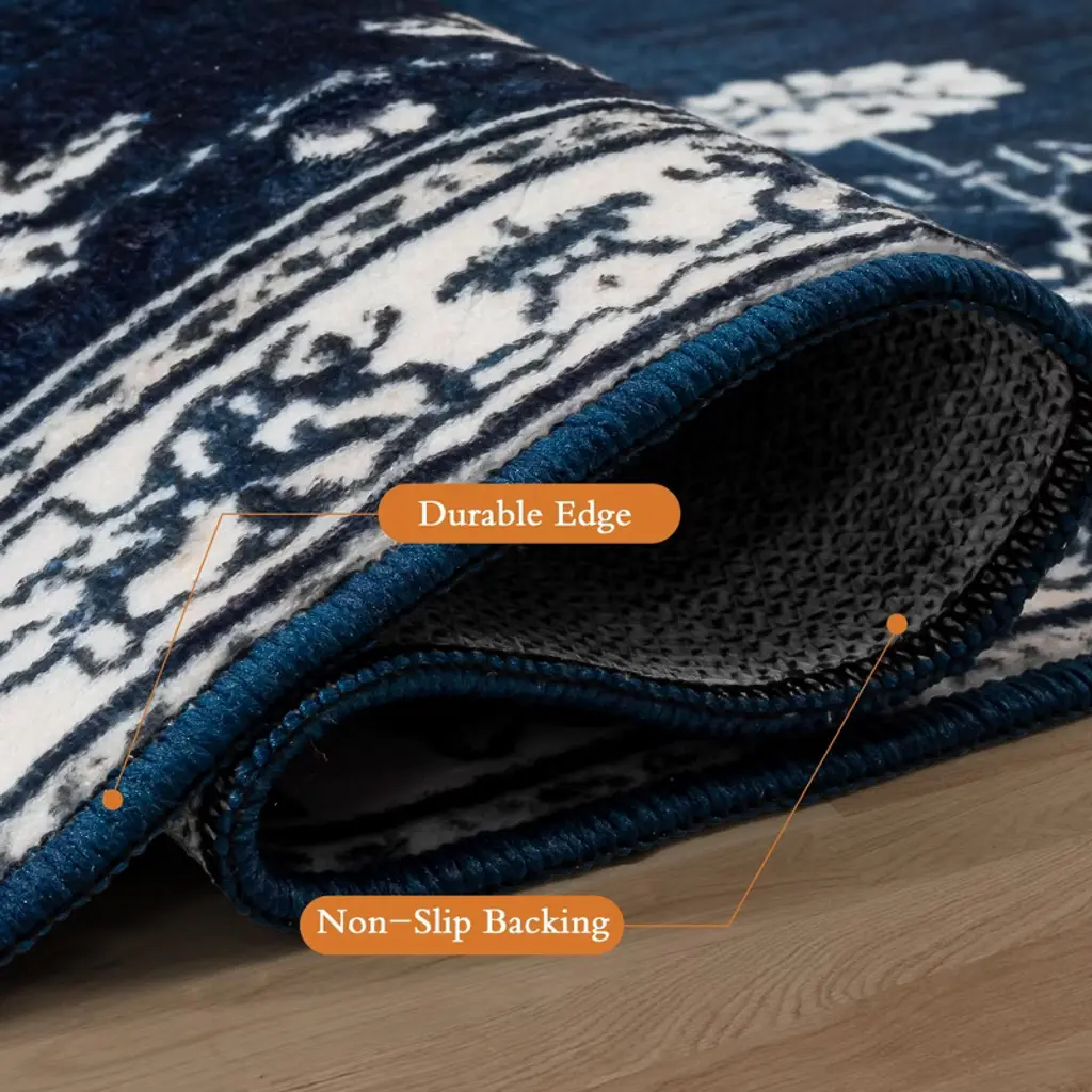 Charming Blue and Cream Design: The subtle combination of blue and cream creates a calming, balanced look that fits seamlessly into any space. Whether you're enhancing your living room, hallway, or entryway, this rug adds a touch of style and elegance to your decor. Non-Slip Backing for Safety: Designed with a non-slip backing, this rug stays securely in place, even in high-traffic areas. You won¡¯t have to worry about it slipping or shifting, providing added safety for homes with children or pets. Machine Washable for Easy Care: Keep your rug looking fresh and clean with ease. Simply toss it in the washing machine to remove dirt, spills, and stains. The machine washable feature ensures hassle-free cleaning and long-lasting use. Soft and Comfortable: Made from soft yet durable materials, this rug provides comfort underfoot while offering long-term durability. It's perfect for areas where you spend a lot of time, such as your living room or hallway. Versatile for Any Room: Ideal for multiple settings, this rug works as a cozy area rug in your living room, a functional hallway runner, or an inviting entryway accent. Its neutral tones effortlessly complement a variety of interior styles, from coastal to modern or traditional decor. Low Maintenance: Designed for everyday use, this rug is easy to care for. Its machine washable nature allows for quick cleaning, while the high-quality fibers resist wear and tear, making it an excellent option for high-traffic areas. Eco-Friendly Choice: Made with eco-conscious materials, this rug is both a stylish and environmentally friendly option for those seeking sustainable decor.