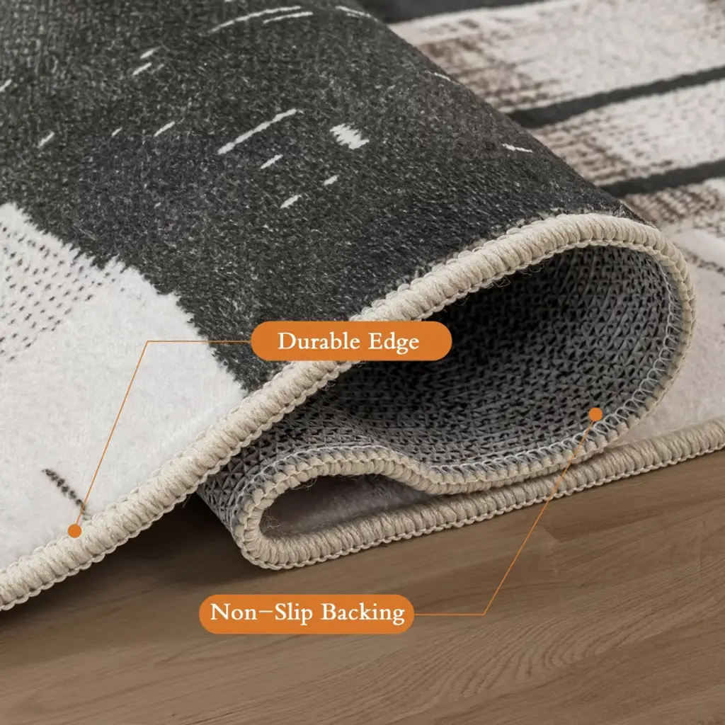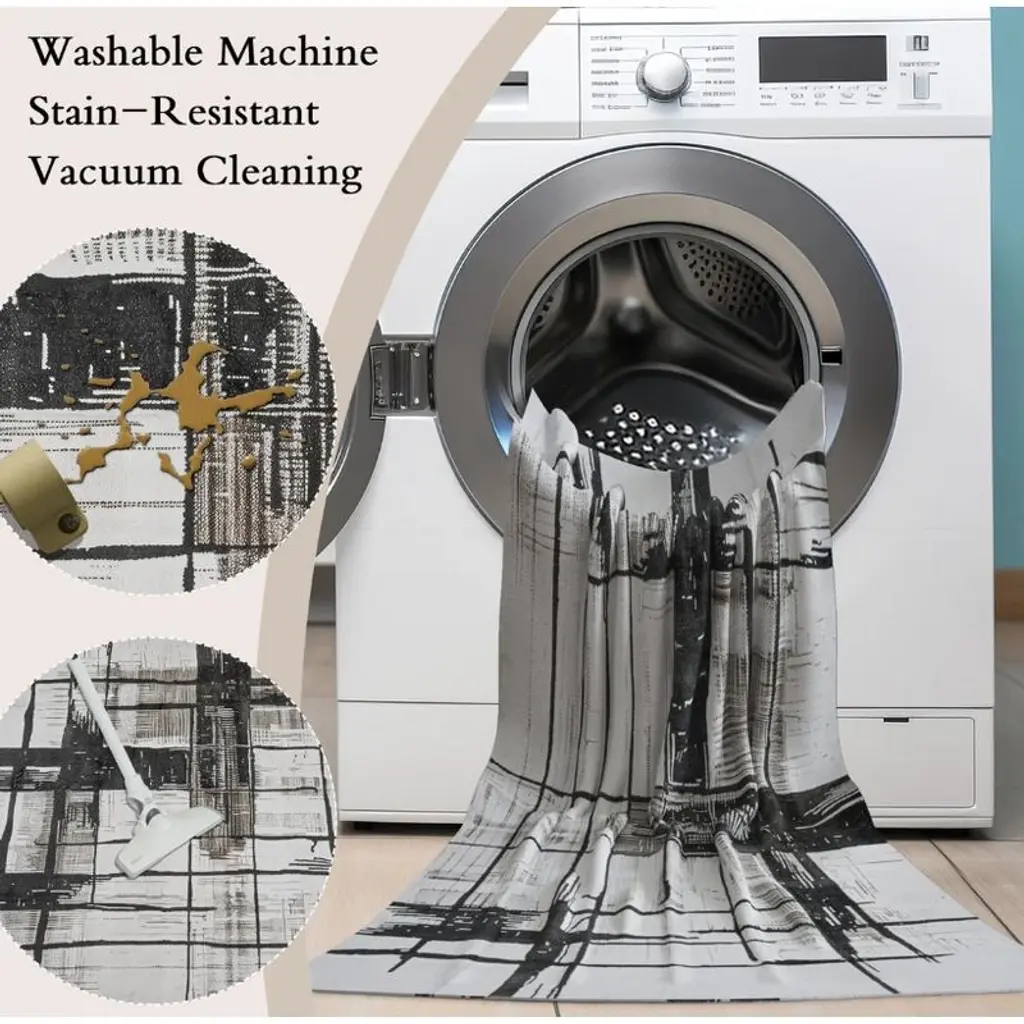 Modern Grey and Cream Design: The understated yet sophisticated combination of grey and cream creates a neutral color palette that easily complements various decor styles, from modern to transitional. The sleek design enhances any room with a contemporary touch. Non-Slip Backing for Stability: Safety is key, especially in high-traffic areas. This rug is equipped with a non-slip backing, ensuring it stays securely in place on hardwood, tile, or carpeted floors. It provides extra stability, making it an excellent choice for homes with children or pets. Machine Washable for Effortless Maintenance: Keep your rug looking pristine with minimal effort. Simply toss it into the washing machine to easily clean off dirt, stains, or spills. The machine washable feature makes maintenance simple and convenient, perfect for busy households. Soft and Comfortable: Made from high-quality materials, this rug offers a soft feel underfoot, providing a comfortable surface for your family to walk on, lounge on, or entertain guests. Versatile for Any Room: Whether used as a large area rug in the living room, a hallway runner, or a stylish entryway accent, this rug fits perfectly in any space. Its modern design and neutral color palette work beautifully with a variety of furniture and decor styles.