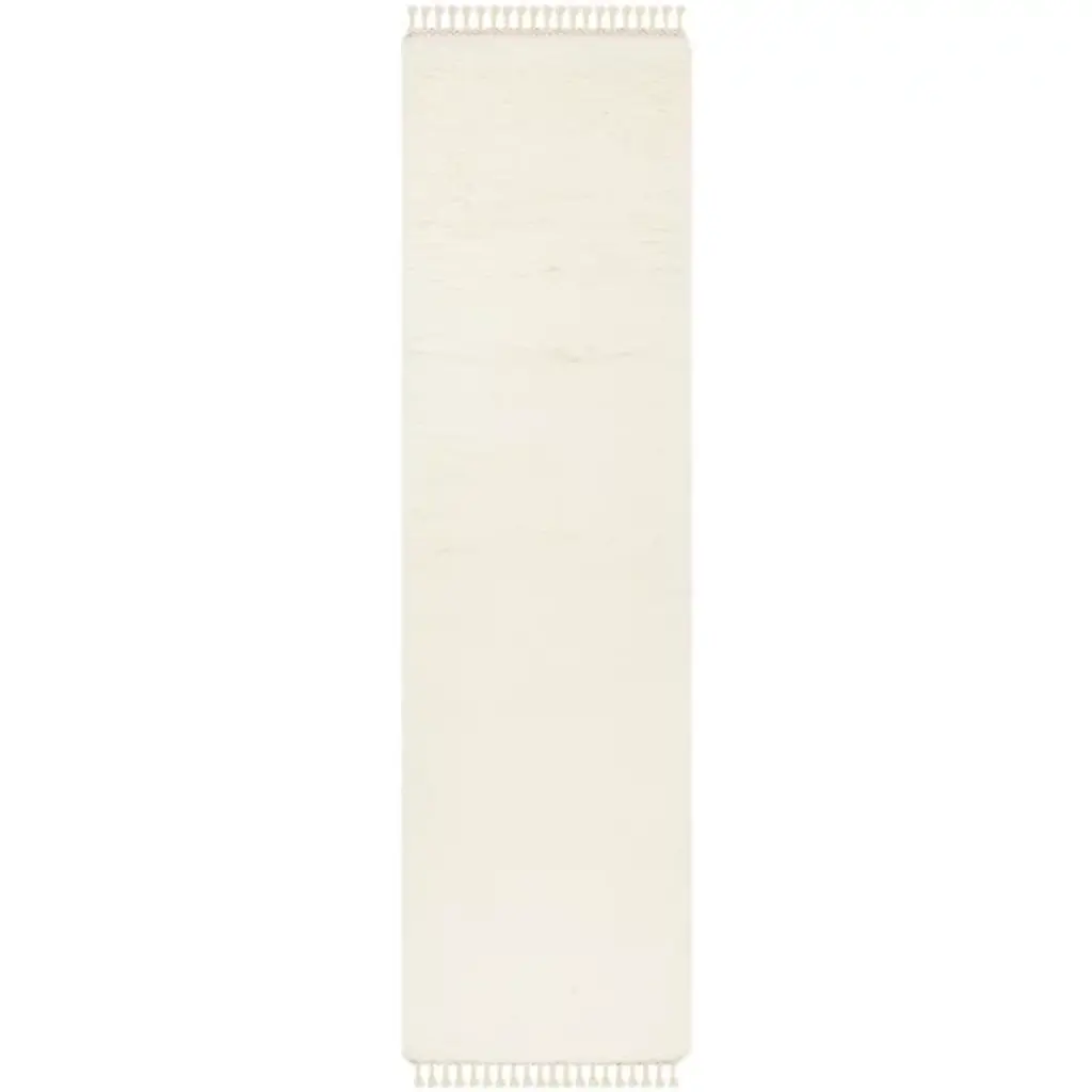 The Meknes Runner Rug from Alder & Ore (Safavieh) brings minimalist design to high-traffic areas. The New Zealand wool construction results in a durable surface that withstands daily use. Made in India, this hand-knotted runner incorporates braided tassels at both ends, a nod to traditional craftsmanship. The clean, uncluttered surface lets the material's natural qualities shine through. Essential for hallways and galleries, this runner acts as a foundation piece that guides movement through spaces while providing cushioned steps.