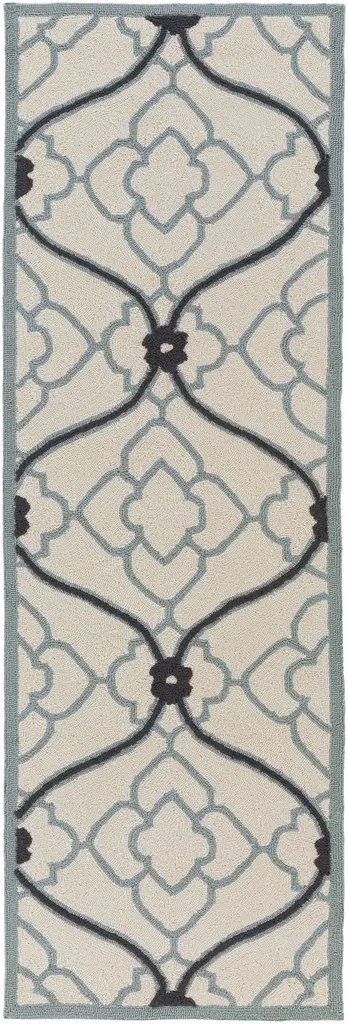 Collection: Menomonie Colors: Navy, Medium Gray, Peach Construction: Hand Hooked Material: 100% Polypropylene Pile: Medium Pile Pile Height: 0.5" Styles: Outdoor Backing: Outdoor Latex Outdoor Safe: Yes Made In: China Thickness: 0.63" Price Range: $$$$$ (Affordable)