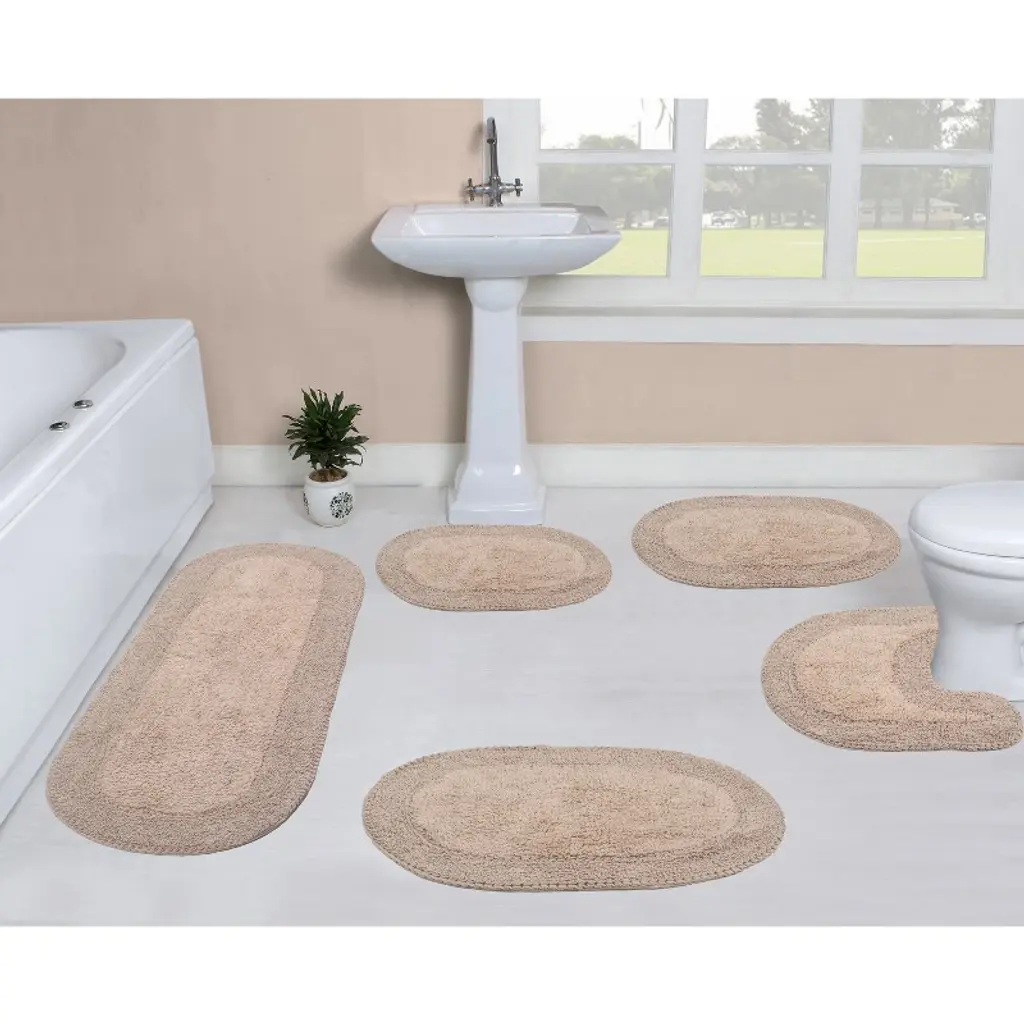 Upgrade your bathroom with the Micro Plush Collection 5-Piece Bathroom Rug Set, designed for ultimate comfort, coverage, and style. Made from 100% polyester, each piece features a luxuriously soft, solid tufted surface that adds a warm and inviting feel underfoot. This complete set includes a standard bath rug, contour rug, toilet lid cover, and two versatile accent rugs, giving your space a cohesive and functional look. Oeko-Tex Certified, it includes no harmful substances or chemicals, ensuring a safe and skin-friendly experience for every member of the family. Built for everyday use, each rug is equipped with a gel form backing to keep it securely in place, providing added safety on slippery bathroom floors. The durable construction stands up to regular use and is fully machine washable, allowing for easy cleaning without sacrificing softness or color. Whether you're refreshing your master bath or upgrading a guest space, this 5-piece set delivers both elegance and practicality to elevate your daily routine.