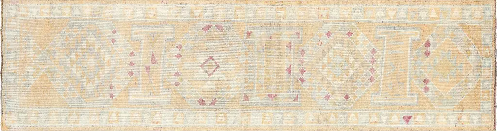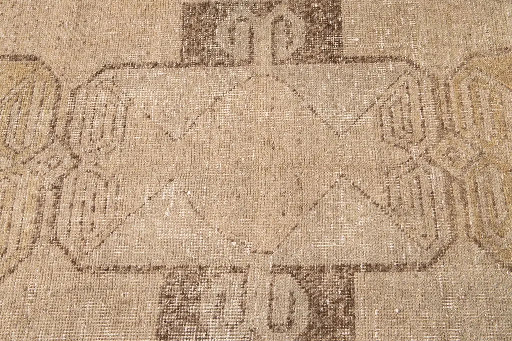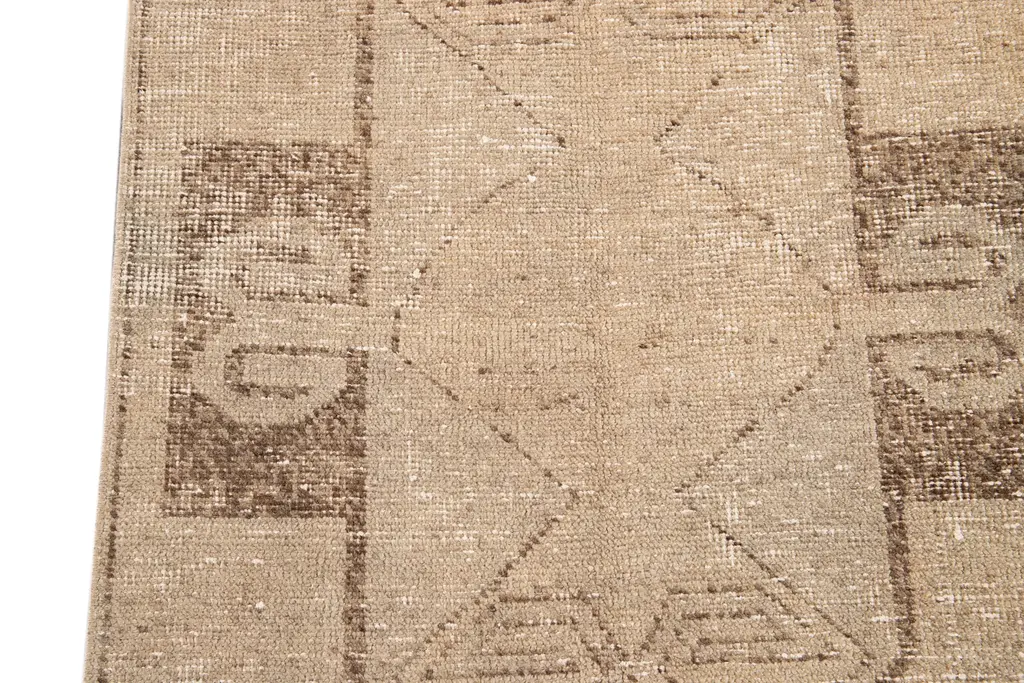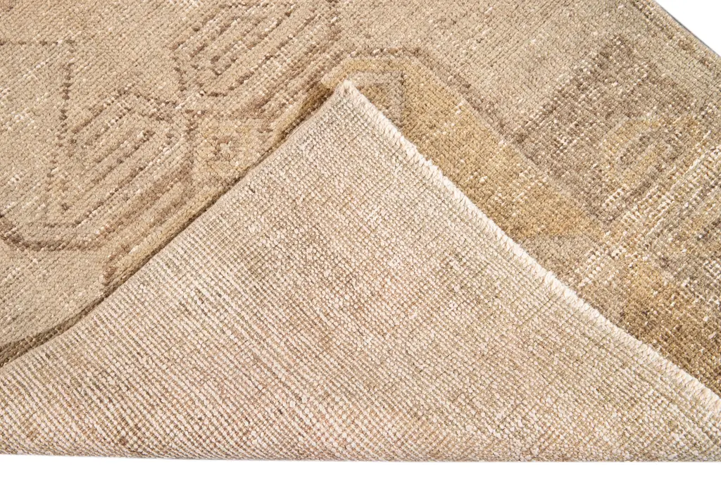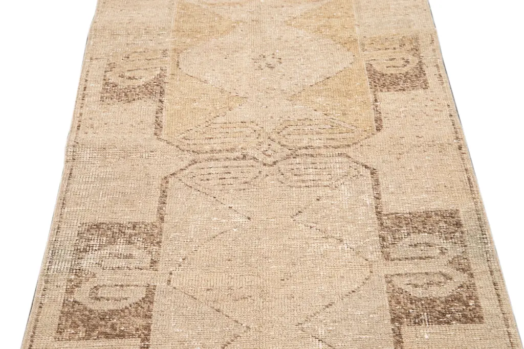 A Beautiful Turkish runner rug with a tan field, and brown accents in an all-over multi-medallion design.This hand knotted wool runner measures 2'10" x 12'4".