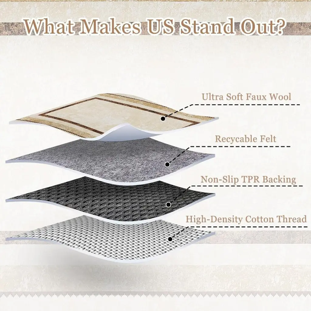 **Modern Bordered Non-Skid (Non-Slip) Low Profile Pile Rubber Backing Indoor Kitchen Runner Rugs** Elevate your kitchen decor with our stylish and functional Modern Bordered Non-Skid Low Profile Pile Rubber Backing Indoor Kitchen Runner Rugs. Designed to blend seamlessly with contemporary interiors, these rugs not only enhance the aesthetic appeal of your space but also provide safety and comfort underfoot. **Key Features:** - **Modern Design:** The sleek bordered pattern adds a touch of sophistication to your kitchen, making it the perfect accessory for both modern and traditional styles. - **Non-Skid & Non-Slip:** Safety is our priority! Our rugs feature a high-quality non-skid backing that keeps them securely in place, reducing the risk of slips and falls, even in high-traffic areas. - **Low Profile Pile:** With a low-profile design, these rugs fit perfectly under doors and furniture, ensuring easy movement and accessibility while maintaining a chic look. - **Durable Rubber Backing:** Made with premium rubber backing, these rugs are built to withstand daily wear and tear, making them ideal for busy kitchens. They are also easy to clean, ensuring they stay looking fresh and vibrant. - **Versatile Use:** Perfect for kitchens, dining areas, and laundry rooms, these runner rugs add a stylish touch while providing comfort and safety wherever you need it most. **Why Choose Our Kitchen Runner Rugs?** - **Quality Craftsmanship:** Each rug is crafted with attention to detail, ensuring durability and longevity. - **Easy Maintenance:** Simply vacuum or spot clean to keep your rugs looking new, making them a practical choice for any home. - **Perfect Size:** The 5-piece set offers versatility in placement, allowing you to create a cohesive look throughout your kitchen space.