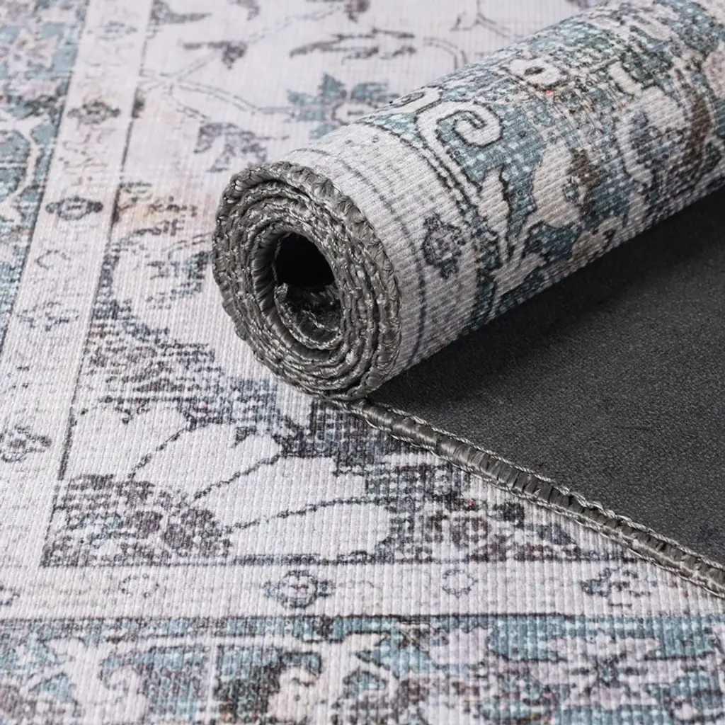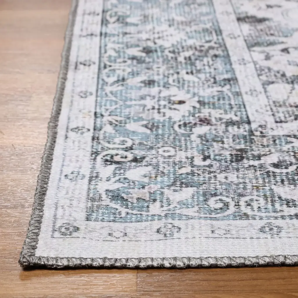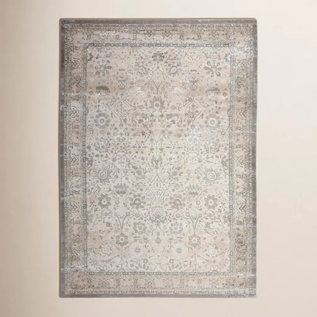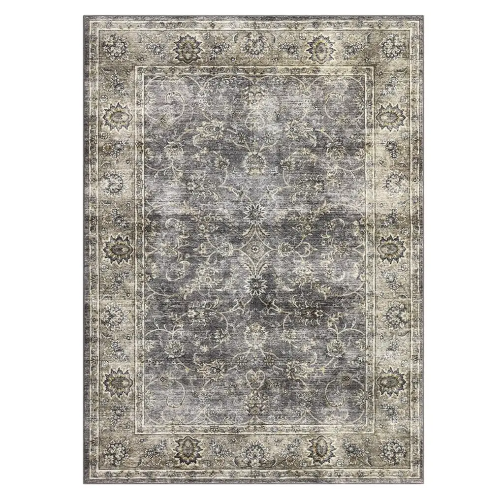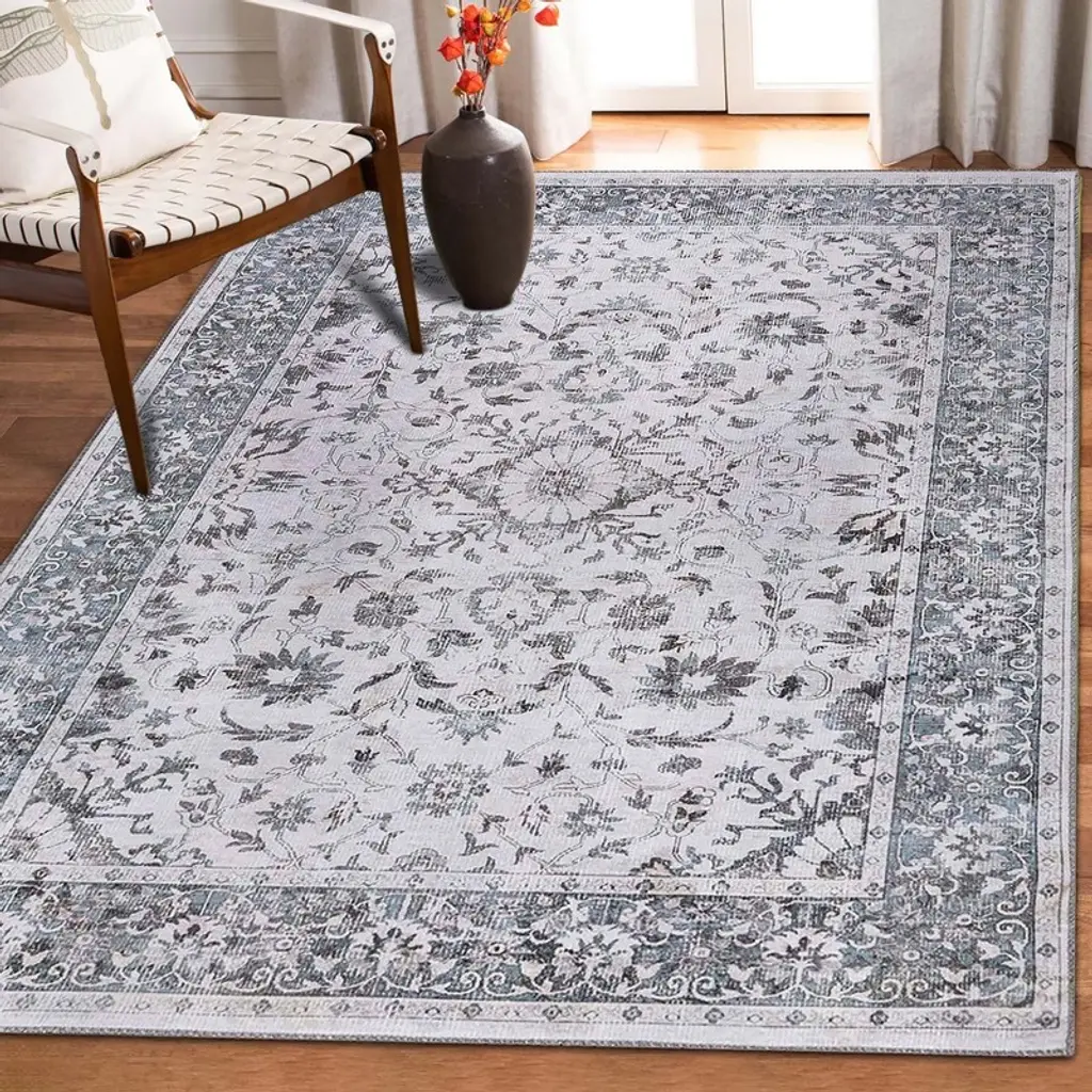 Modern Farmhouse Floral Scroll Border Indoor Area Rug Or Runner, 7'6"x9'6", Grey - Blue Nile Mills