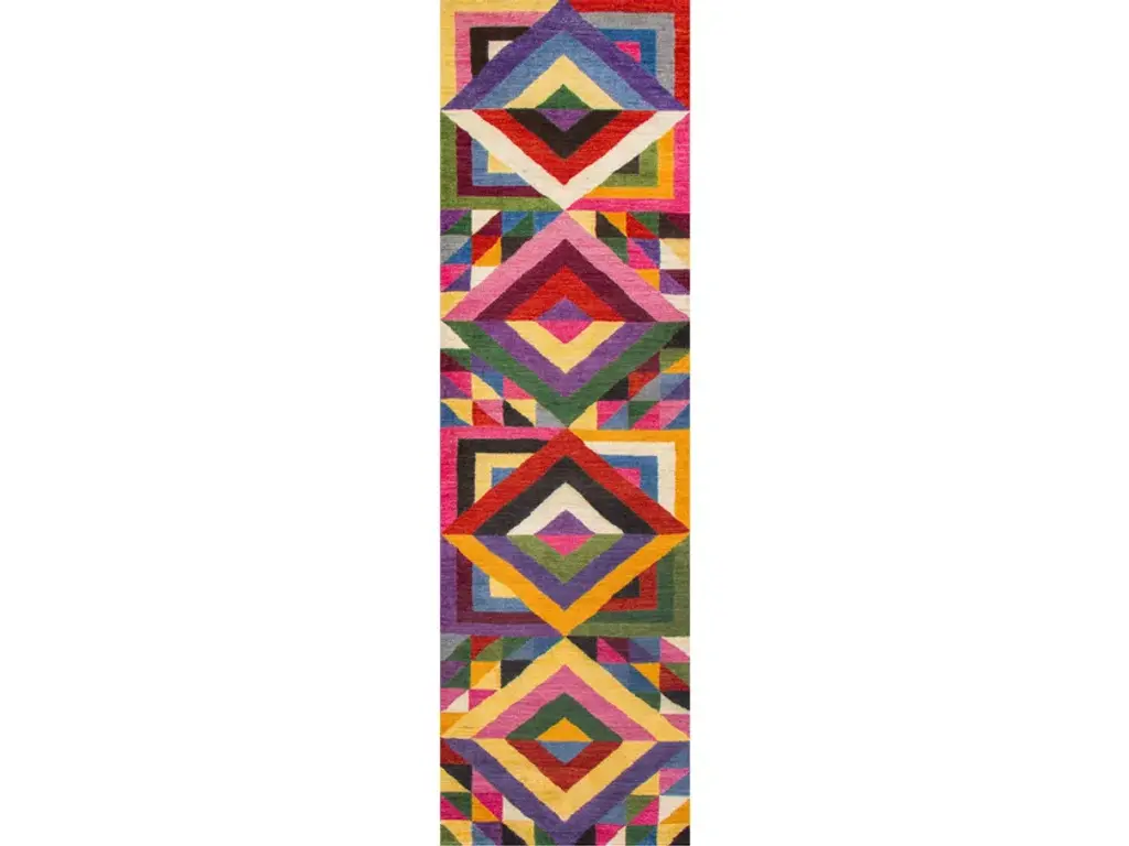 MODERNIST STAINED-GLASS RUNNER 5 is a rectangular wool rug.Zollanvari Super Fine Gabbeh.“Colour is a power which directly influences the soul” stated Wassily Kandinsky. Colour interaction is at the very heart of this new collection. Zollanvari have taken southern Persian tribal motifs, such as trees and squares, and created a painterly collection rich in colour. And yet, there is a third dimension to these creations… they are inspired in style by modernist stained-glass windows. This Zollanvari Studio design takes elements from Zollanvari's Gabbehs Flora & Fauna Collections to deliver an ethereal, soulful quality to any interior.