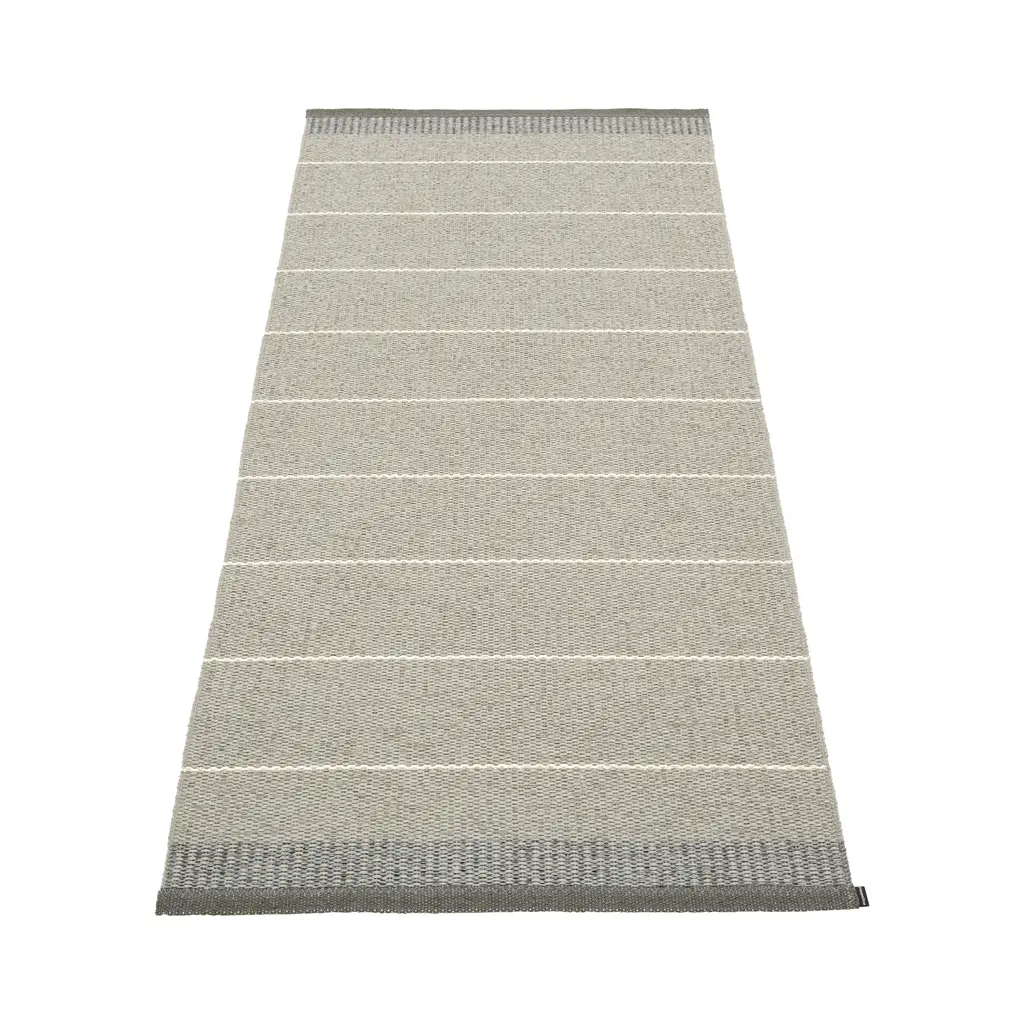The Mono plastic rugs from Pappelina are woven on a traditional loom in Dalarna, Sweden. Made of phthalate-free PVC ribbon, the rugs are durable and easy to care for, and their stylish two-tone colors suit various decors. Due to its narrow form, the rug can easily be put to use as a stunning hallway runner, kitchen area rug or outdoor rug. The Mono rugs feature double-folded ends and a sewn rubber label.