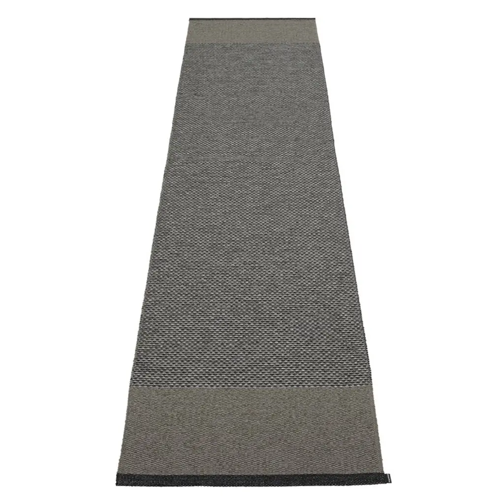 The Mono plastic rugs from Pappelina are woven on a traditional loom in Dalarna, Sweden. Made of phthalate-free PVC ribbon, the rugs are durable and easy to care for, and their stylish two-tone colors suit various decors. Due to its narrow form, the rug can easily be put to use as a stunning hallway runner, kitchen area rug or outdoor rug. The Mono rugs feature double-folded ends and a sewn rubber label.