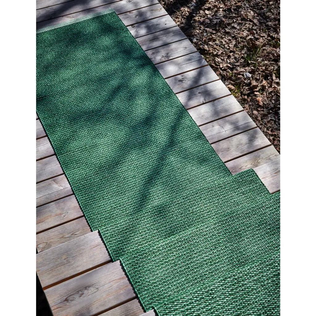 The Mono plastic rugs from Pappelina are woven on a traditional loom in Dalarna, Sweden. Made of phthalate-free PVC ribbon, the rugs are durable and easy to care for, and their stylish two-tone colors suit various decors. Due to its narrow form, the rug can easily be put to use as a stunning hallway runner, kitchen area rug or outdoor rug. The Mono rugs feature double-folded ends and a sewn rubber label.