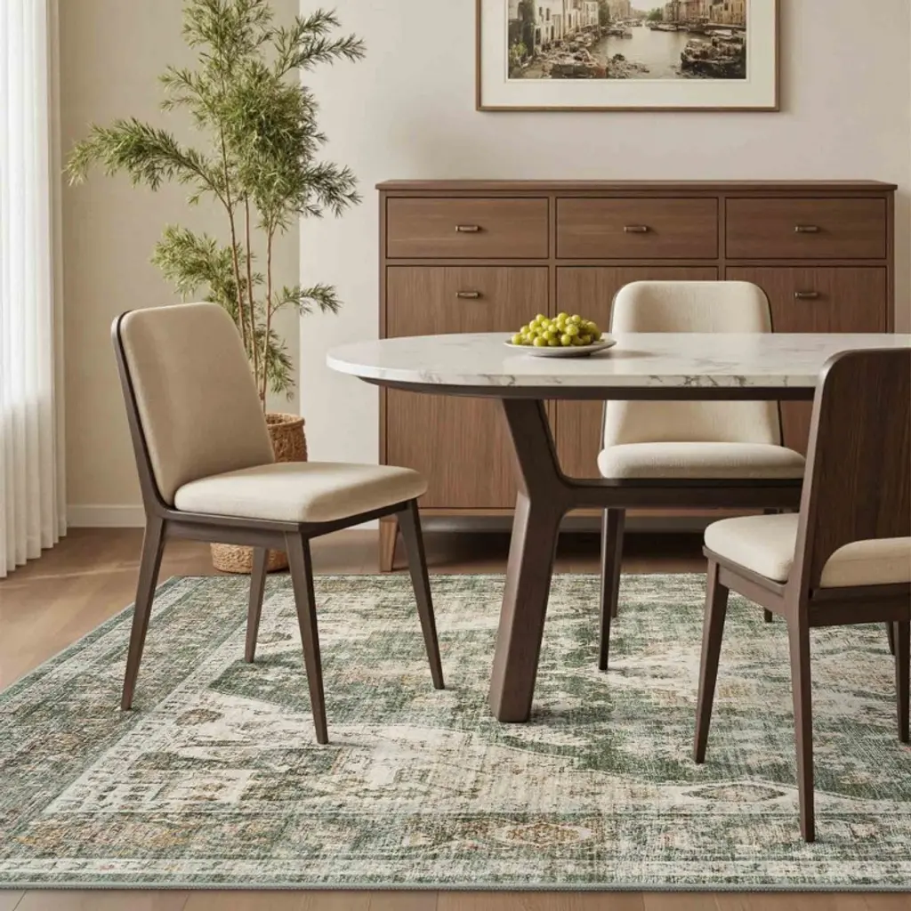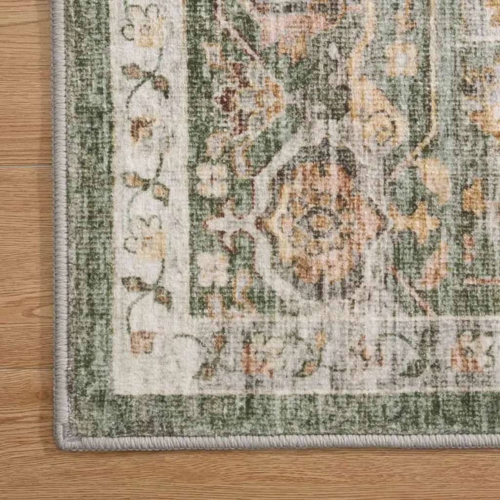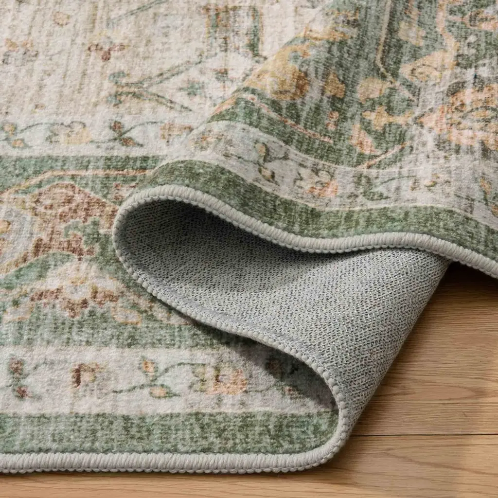 Bring a touch of timeless elegance to your home with this green floral rug, featuring a classic pattern and refined border. Soft and durable underfoot, it offers comfort for kids and adults alike. The non-slip backing ensures safety, while its washable design makes cleaning effortless. Pet- and child-friendly, it’s a stylish and practical addition to any living space.
