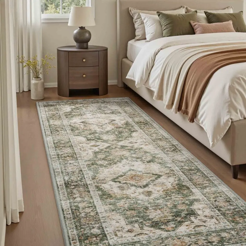 Montvoo Oriental Machine Washable Area Rug Sage Green Runner 2'x6'