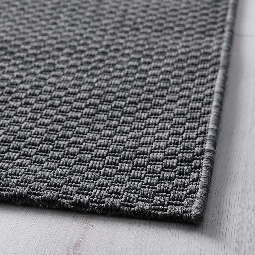 MORUM Rug flatwoven, in/outdoor - dark gray 2 ' 7 "x6 ' 7 ". Tested and approved for use outdoors in moderate to warm climate conditions with rain. Ideal for high traffic areas like kitchens and hallways since the rug is easy to vacuum. This product has been tested for domestic use.