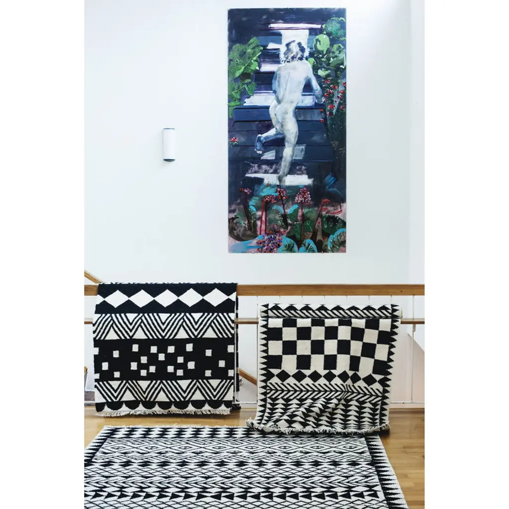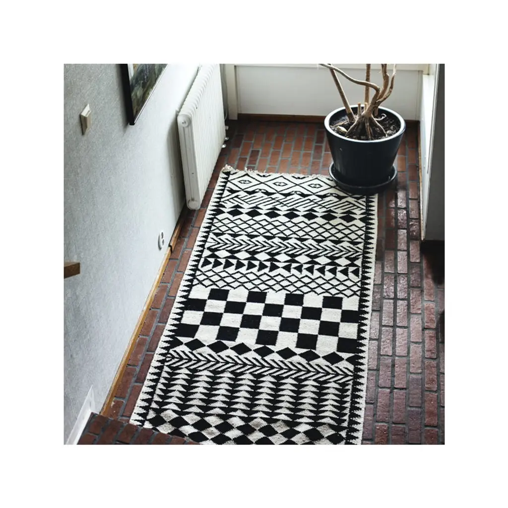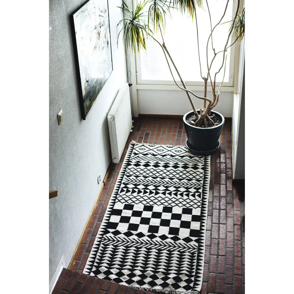 The pattern of the beautiful hand made rug by MUM’s combines both Scandinavian design and more traditional decorations. The inspiration for the pattern comes from an African village in which every house is like a piece of art. Made of wool, the carpet has been designed in Finland and handmade in Bhadohi, India. Due to its narrow form, the rug can easily be put to use as a stunning hallway runner or a bedside area rug.