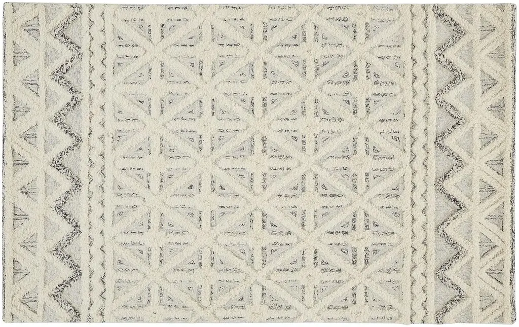 Collection: Mynka Colors: Gray, Ivory Construction: Machine Made Material: Face: 100%Polyester / Warp: Jute Pile: High Pile Pile Height: 1.3" Styles: Transitional,Bohemian & Eclectic,Farmhouse Backing: Jute Made In: Turkey Thickness: 1.3" Price Range: $$$$$ (Affordable)