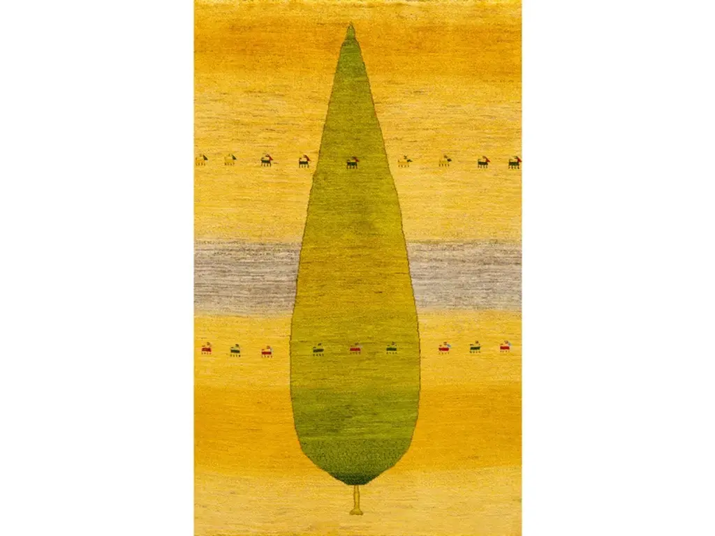 Naïve Cypress Tree of Life 16 RUNNER is a rectangular wool rug.Zollanvari Super Fine Gabbeh.Trees, flowers and animals (principally lions) are design themes that are used by tribal women to weave some of Zollanvari’s most original Gabbehs. The weavers are given patterns and colour ranges (often inspired by ancient and archaic patterns such as the ‘Tree of Life’) but have a free hand in producing these works of woven art using their imaginations and the traditional design vocabulary passed down through each new generation of weavers. This makes each Gabbeh unique and individual. Flora & Fauna design Gabbehs are also available in Zollanvari Super Fine (Kashkuli, Luribaft and Bulurbaft) and Zollanvari Fine qualities.The designs are available in custom and bespoke sizes and colours.