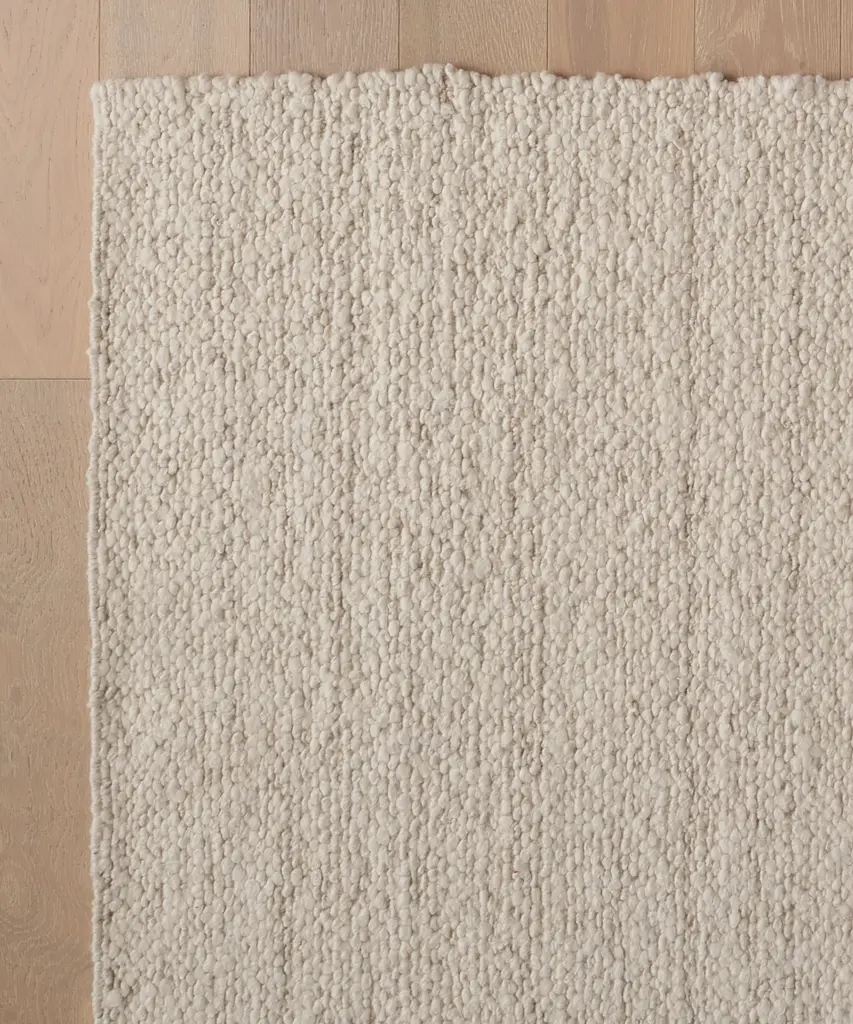 2'6" x 18'Hand knotted, flat-weave raw woolOrigin: IndiaField Color: IvoryAccent Colors: Brown, Beige