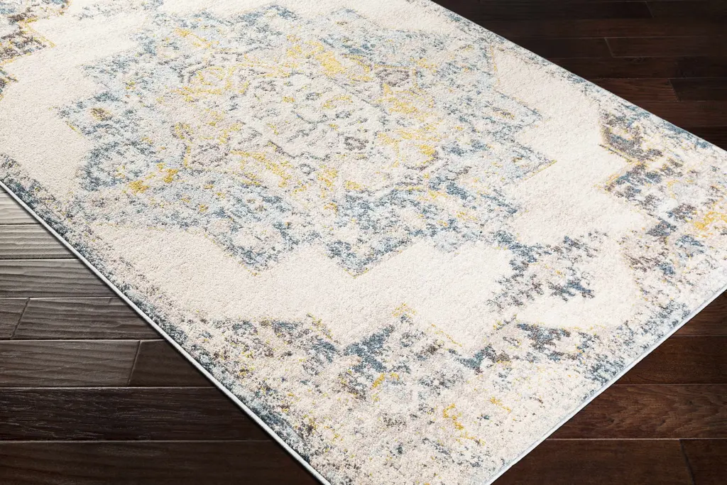 Collection: Nibley Colors: Light Gray, Mustard, Blue, Dark Brown, Ice Blue, Medium Gray Construction: Machine Woven Material: 100% Polypropylene Pile: Medium Pile Pile Height: 0.31" Styles: Traditional Made In: Turkey Thickness: 0.5" Price Range: $$$$$ (Most Affordable)