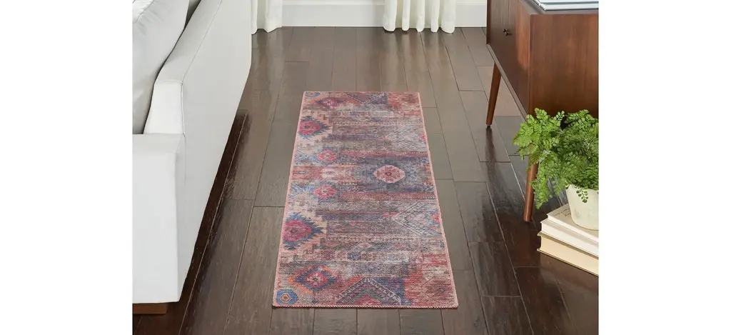 The Nicole Curtis Alamos Runner Rug channels the vibrant spirit of the past through intricately printed Persian floral and tribal designs. This vintage-inspired rug helps you transform your home into your sanctuary, with this design carrying a distinctively distressed finish for a comfortably lived-in feel. Designed with easy cleaning in mind, with a machine-washable blend of flat woven chenille and cotton fibers that are incredibly soft to the touch.