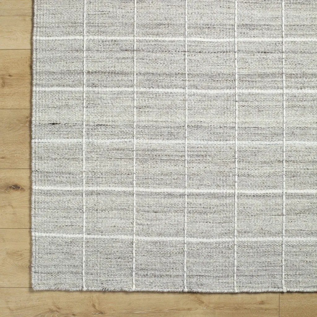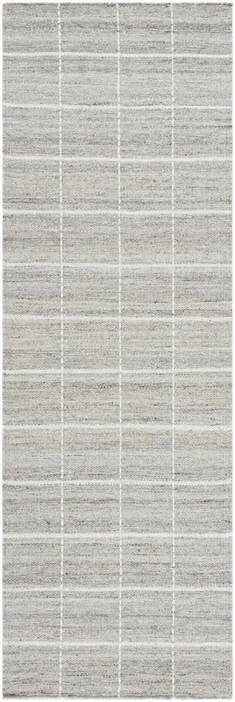 Collection: Nissa Colors: Light Gray, Off White, Medium Gray Construction: Hand Woven Material: 100% Wool Pile: No Pile Styles: Transitional,Traditional Made In: India Thickness: 0.4" Price Range: $$$$$ (Affordable)
