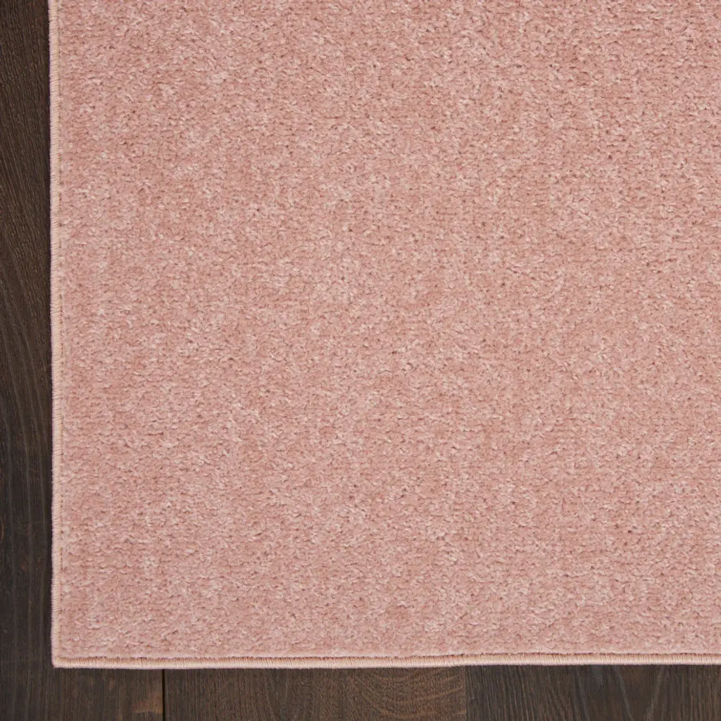 Designed for busy, active lifestyles, this pink outdoor rug from the Nourison Essentials Collection is the ideal pairing of style and practicality. The simple, solid pattern is enhanced with subtle tonal variations and a surprisingly soft texture that�s equally suitable for any room inside the home. Place in any room as a standalone foundation for your d�cor or use as part of a layered rug look. Machine-made with a low-profile construction from easy to clean polypropylene yarns, this modern rug easily withstands heavy traffic and does not shed. Hand washable outdoors only: rinse with a hose and air dry.VERSATILE DESIGN: This outdoor rug has a soft texture that adds comfort to indoor and outdoor spaces alike.EASY TO CLEAN: Vacuum once a week when using indoors. Washable outdoors only using a garden hose; simply rinse and air dry fully.GREAT FOR LAYERING: The simple, solid design is great as a base for layering with your favorite patterned rugs.LOW PILE: This low-profile rug lays flat quickly for easy placement under furniture and near doorways.MULTIPLE SIZES AVAILABLE: Choose from a variety of shapes and sizes including runner rugs for the kitchen, large rugs for the living room and bedroom, and round rugs for unique spaces.To extend the life of your rug, bring indoors during extreme weather.OEKO-TEX Certified