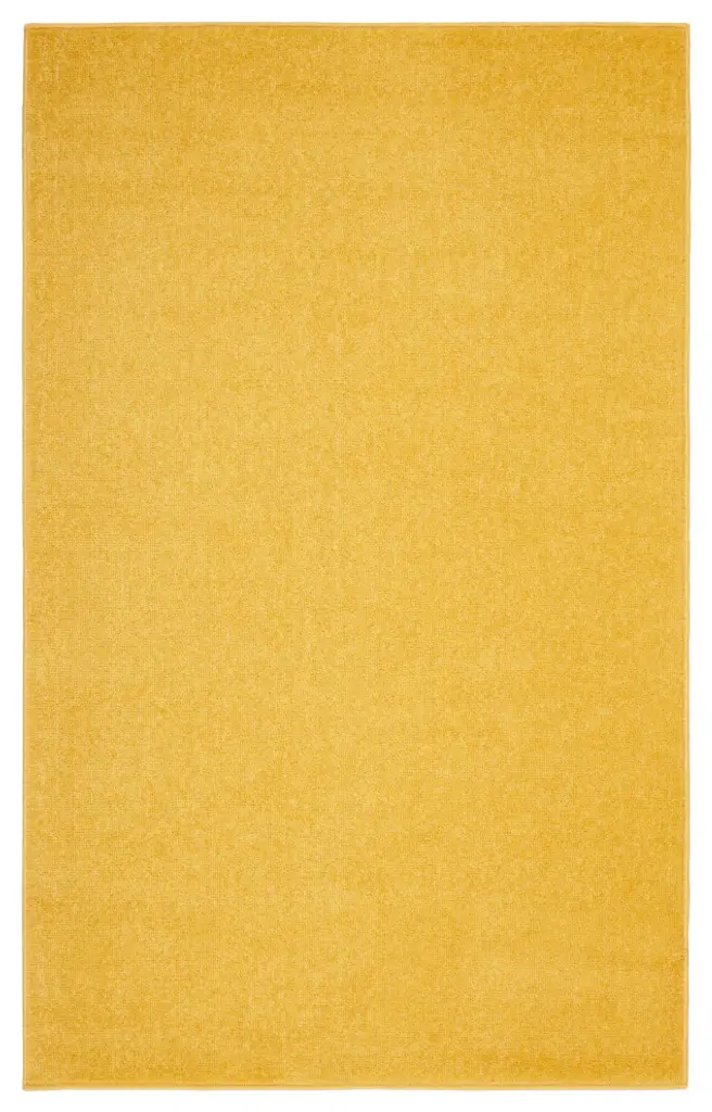 Designed for busy, active lifestyles, this yellow outdoor rug from the Nourison Essentials Collection is the ideal pairing of style and practicality. The simple, solid pattern is enhanced with subtle tonal variations and a surprisingly soft texture that�s equally suitable for any room inside the home. Place in any room as a standalone foundation for your d�cor or use as part of a layered rug look. Machine-made with a low-profile construction from easy to clean polypropylene yarns, this modern rug easily withstands heavy traffic and does not shed. Hand washable outdoors only: rinse with a hose and air dry.VERSATILE DESIGN: This outdoor rug has a soft texture that adds comfort to indoor and outdoor spaces alike.EASY TO CLEAN: Vacuum once a week when using indoors. Washable outdoors only using a garden hose; simply rinse and air dry fully.GREAT FOR LAYERING: The simple, solid design is great as a base for layering with your favorite patterned rugs.LOW PILE: This low-profile rug lays flat quickly for easy placement under furniture and near doorways.MULTIPLE SIZES AVAILABLE: Choose from a variety of shapes and sizes including runner rugs for the kitchen, large rugs for the living room and bedroom, and round rugs for unique spaces.To extend the life of your rug, bring indoors during extreme weather.OEKO-TEX Certified