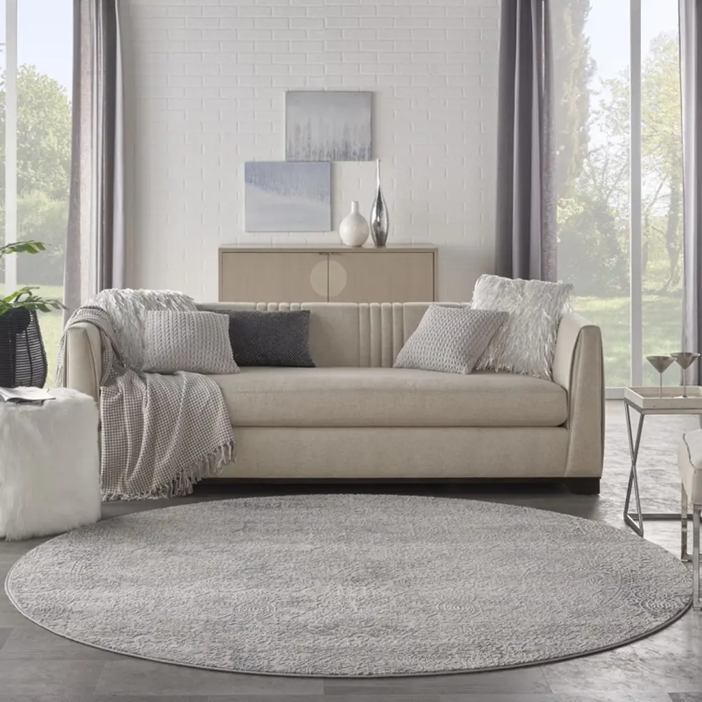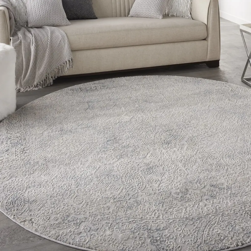 Nourison Rustic Textures Vintage Persian Indoor Area Rug Ivory Light Blue 7’10” X Round