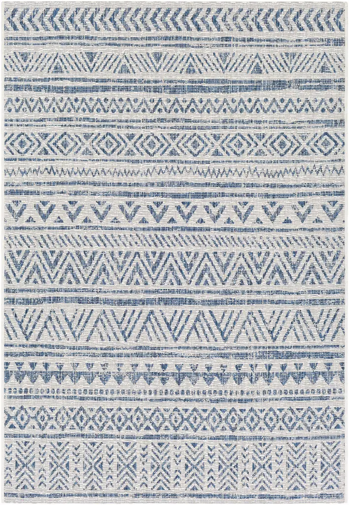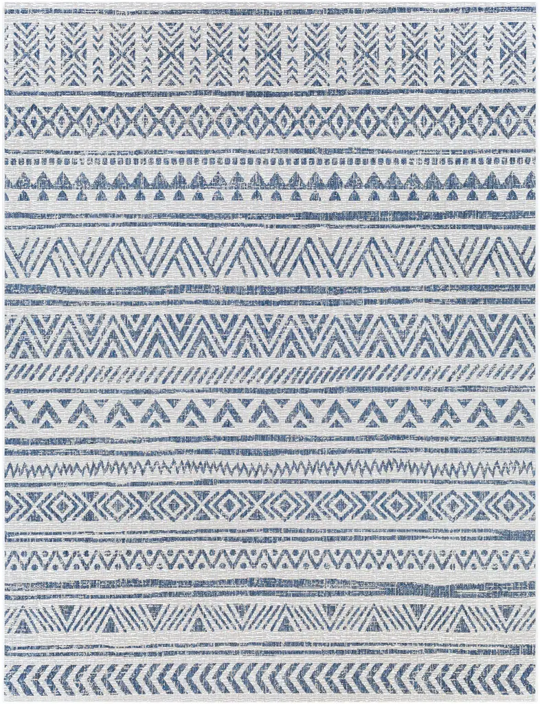 Collection: Forfar Colors: Navy, White, Blue, Light Blue Construction: Machine Woven Material: 100% Polypropylene Pile: Low Pile Pile Height: 0.16" Styles: Transitional,Bohemian Outdoor Safe: Yes Made In: Turkey Thickness: 0.16" Price Range: $$$$$ (Most Affordable)