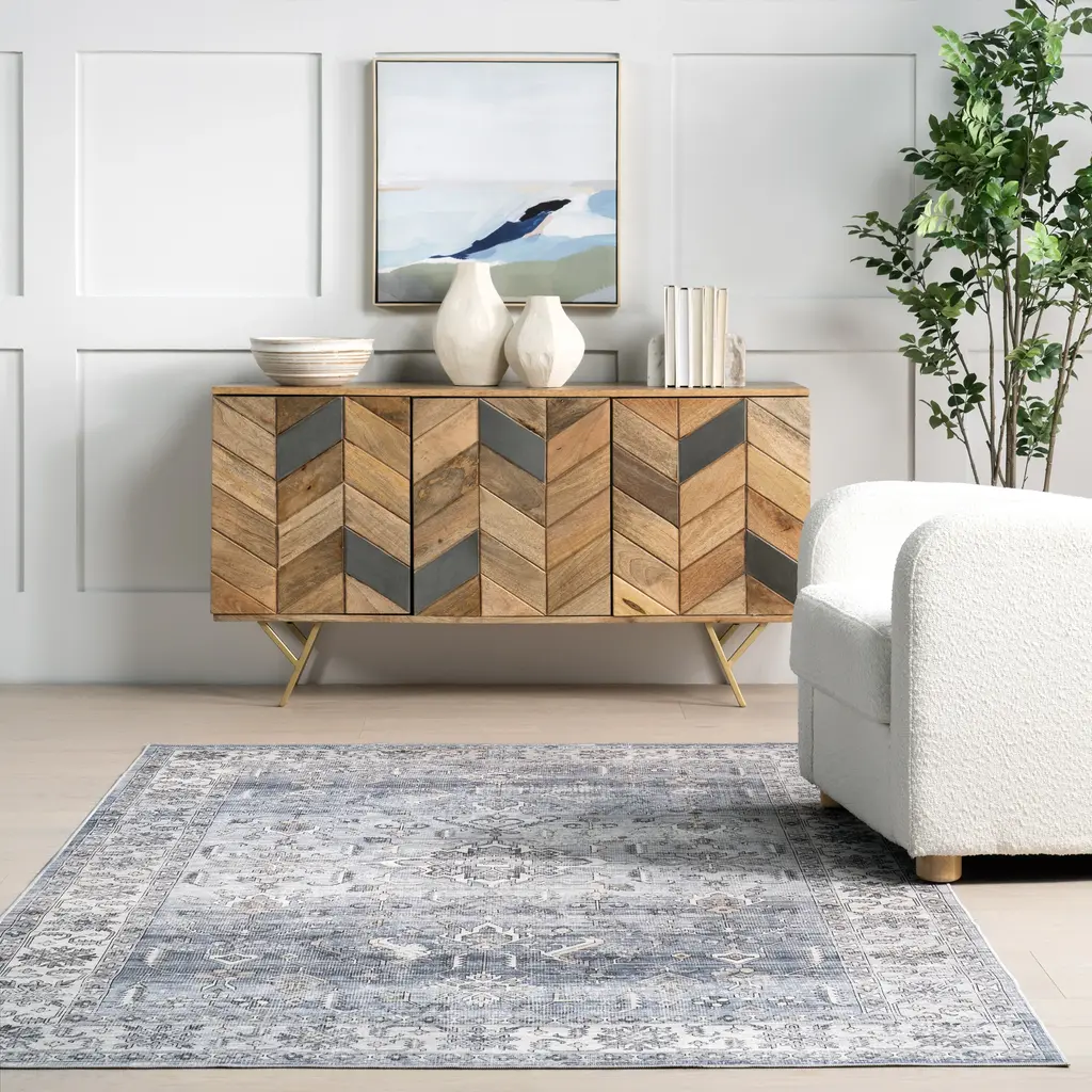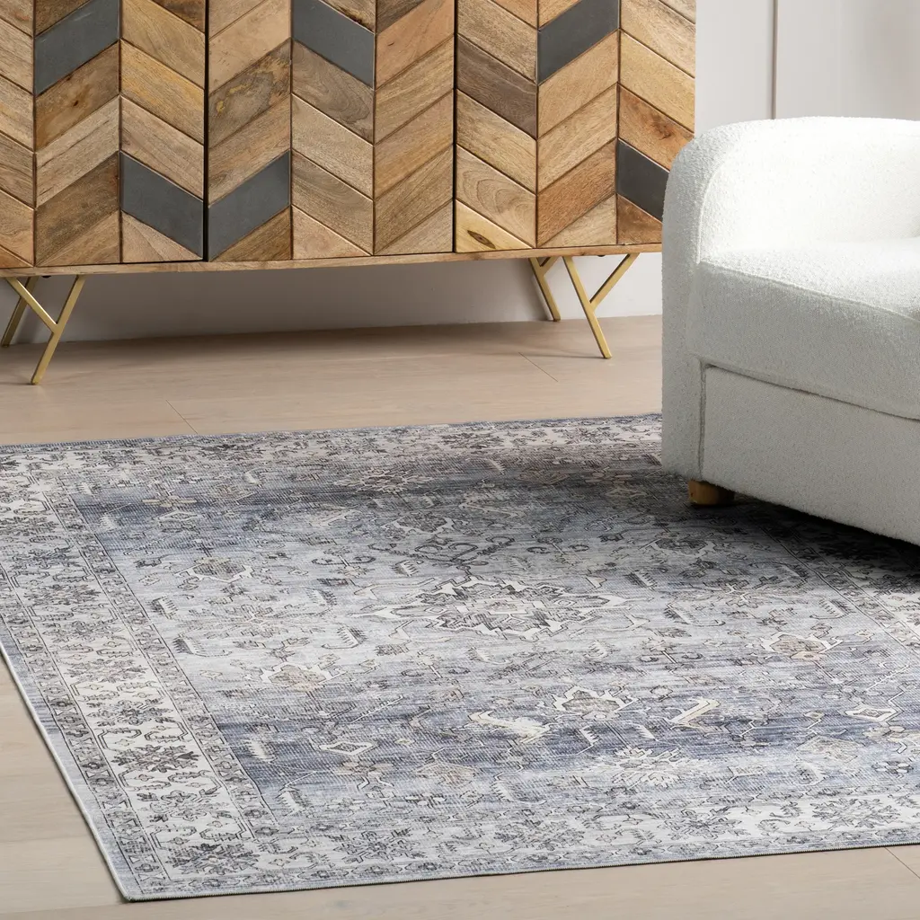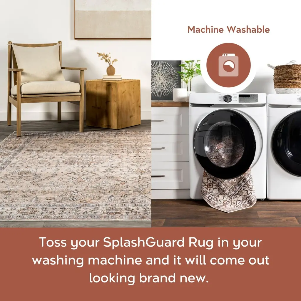 Introducing the ultimate solution for a stylish, low-maintenance home—Nuloom's SplashGuard Machine Washable Collection. Engineered with cutting-edge technology, this rug is designed for those who demand both elegance and practicality in their living spaces. Whether you're dealing with the chaos of a busy household, pets, or frequent gatherings, this collection is here to provide peace of mind without compromising on style. At the heart of these rugs is its advanced performance fabric and surface coating that repels water and stains. When liquid hits the surface, it beads up instead of being absorbed and can be wiped away with ease. Whether it's spilled juice, or even pet accidents, this spill proof rug provides an effortless cleanup experience. A quick swipe with a cloth or paper towel, and the spill is gone, leaving your rug as pristine as before. Even in the event of a more stubborn spill, the rug's machine washable design allows for deep cleaning whenever necessary. Simply toss it in the washing machine, and it will emerge looking fresh and new, ready to continue serving as the stylish centerpiece of your room. But the Splash Guard Collection isn't just about practicality—it's also a statement of style. Available in a range of colors, if you're looking for a grey and white rug to a green rug, we have you covered. These rugs can compliment any decor, from modern minimalist to traditional vintage elegance. Whether you are looking to add a pop of color with a living room rug, a touch of warmth with a bedroom rug, an inviting front door rug, or even a runner for your kitchen, these area rugs enhance any space. The Nuloom SplashGuard Collection effortlessly combines stylish designs with ultimate convenience, offering a chic and modern solution that's easy to clean and perfect for any busy home. 100% Polyester, made in ChinaSpill- and stain-resistant, this washable rug is perfect for those with kids and pets! Its durable machine woven weave will hold up in high traffic areas of your home such as your bedroom, living room, dining room, office, playroom, or hallwaySurface treated to repel water and stains, this rug is perfect for those with kids and pets. Its durable weave with a .04" pile height will hold up in high traffic areas of your homeTo clean, machine wash with cold water using a standard-sized machine (do not use bleach). We recommend line drying or drying without heat on an air-only dryer cycle. A low heat iron can be used if neededWe recommend using a rug pad to provide extra cushioning and to prevent any possible slipping and sliding on your flooring. Rug pads serve as protective layering piece for your floor and your rug from any wear and tear, extending the life of your rug.