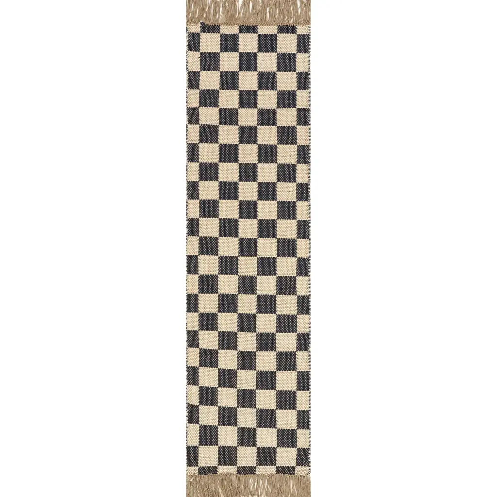 Nuloom Connie Checkered Wool/jute Tasseled Area Rug - 2' X 8' - Grey - Runner