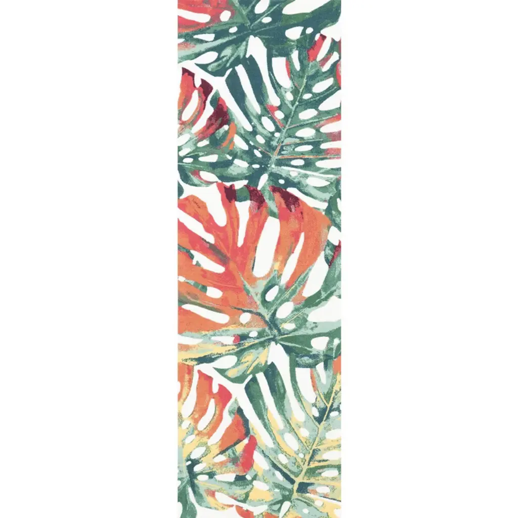 Whoever said beautiful floor accents are only for inside the home hasn''t yet met this floral indoor/outdoor area rug. With a gorgeous tropical leaf design, this rug is sure to impress your guests whether you place it in your living room or on your patio. Enjoy every space in your home with our easy to care for and pet-friendly area rugs.100% Polyester, made in ChinaCrafted of durable synthetic fibers, this versatile rug will elevate your patio, porch, living room, dining room, or entrywaySleek and functional 0.16" pile height allows for convenient placement in entryways, underneath furniture, and will not obstruct doorwaysWater resistant and easy to clean, this rug can be hosed down outside and spot treated for any mild stains using rug cleanerWe recommend using a rug pad to provide extra cushioning and to prevent any possible slipping and sliding on your flooring. Rug pads serve as protective layering piece for your floor and your rug from any wear and tear, extending the life of your rug